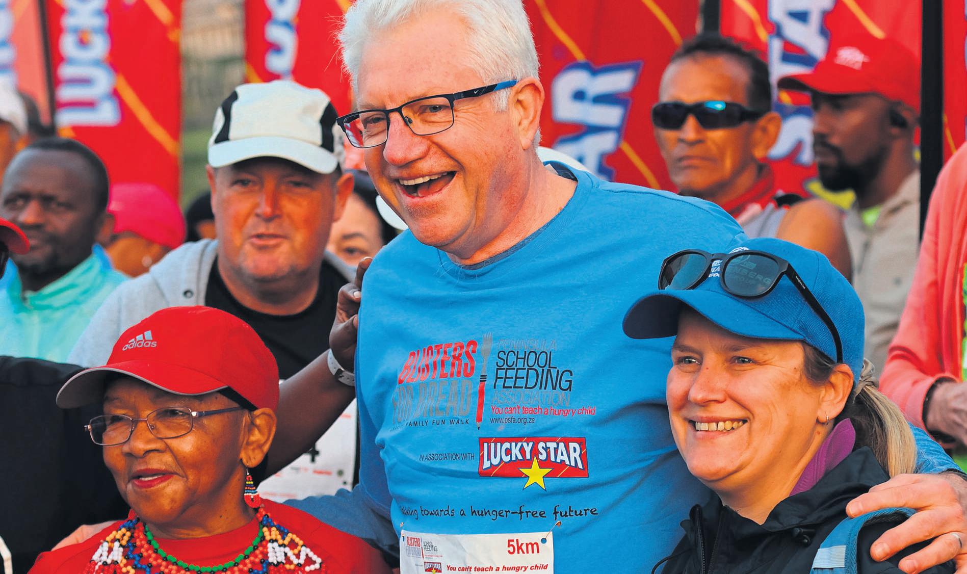 Western Cape Premier Alan Winde joined over 9000 walkers at this year’s Blisters for Bread Charity walk She is flanked by Hester Fortune, left, and Angela Lee-Wright at the start of the 5km walk PHOTOS RASHIED SAACS