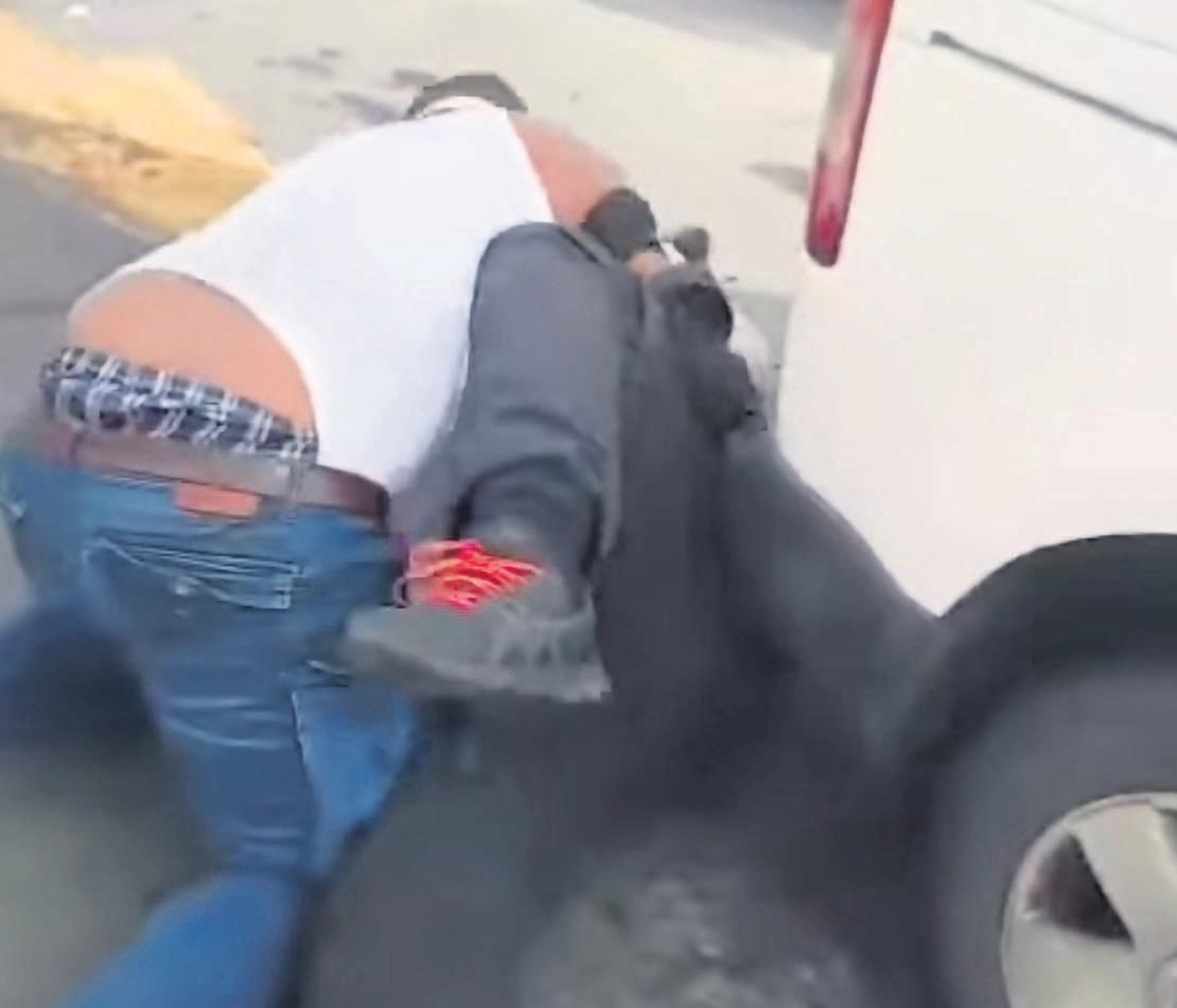 The incident drew a large crowd of young onlookers, many of whom cheered the fight on while others attempted to break it up Footage of the altercation quickly spread across social media platforms