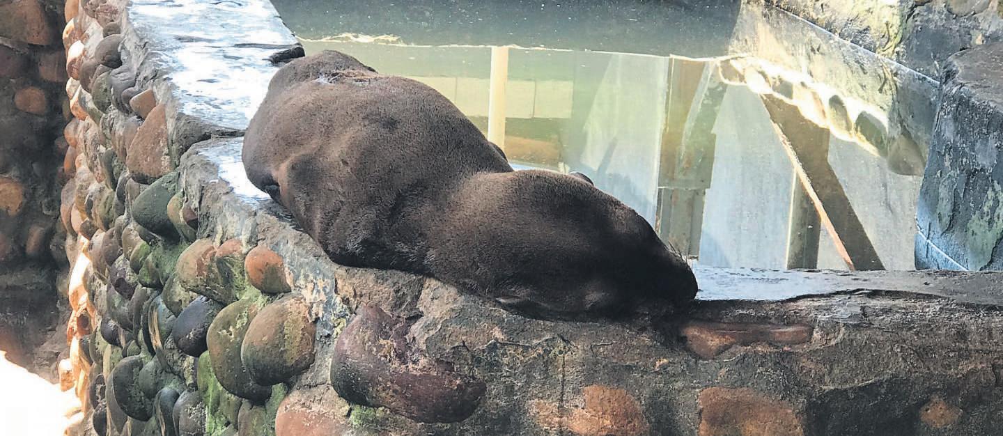 Cape fur seal laying alongside a pool thats not working PHOTO:SUPPLIED