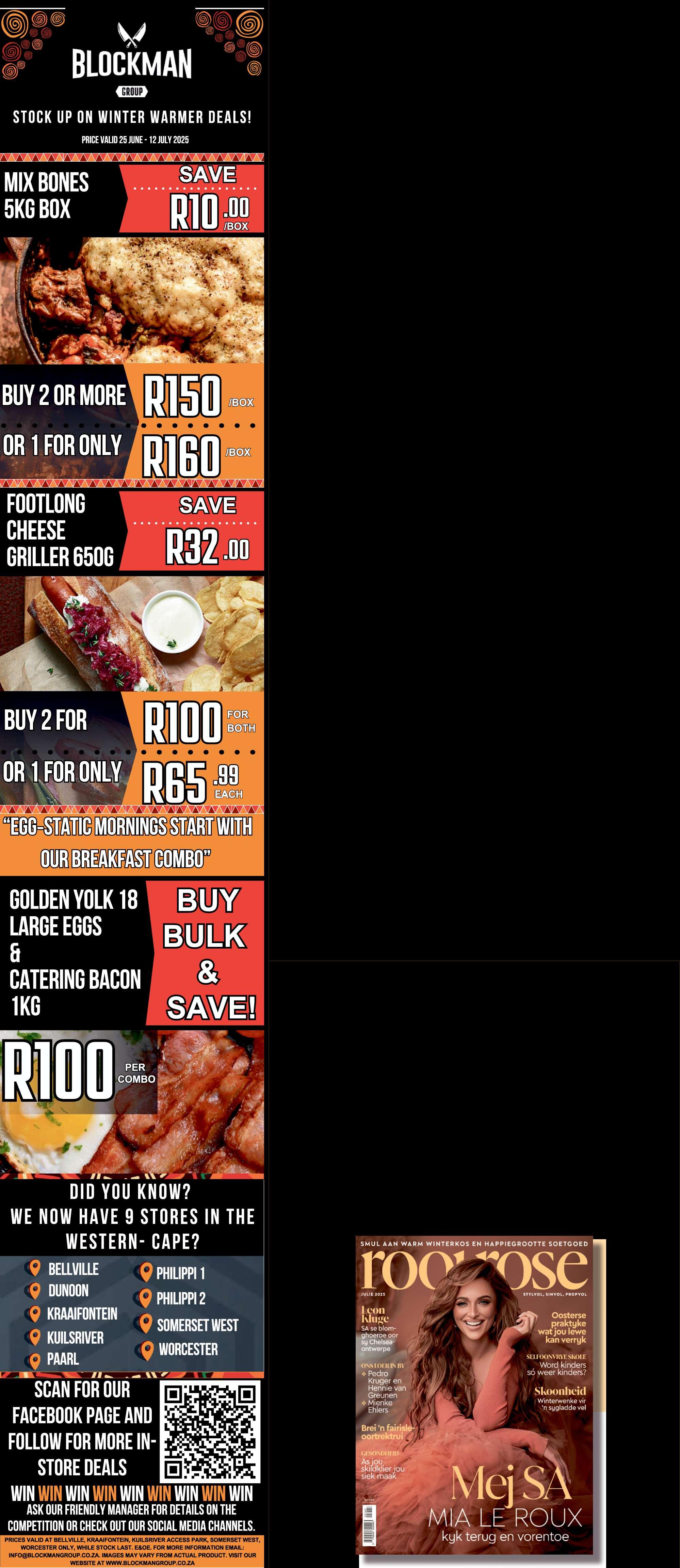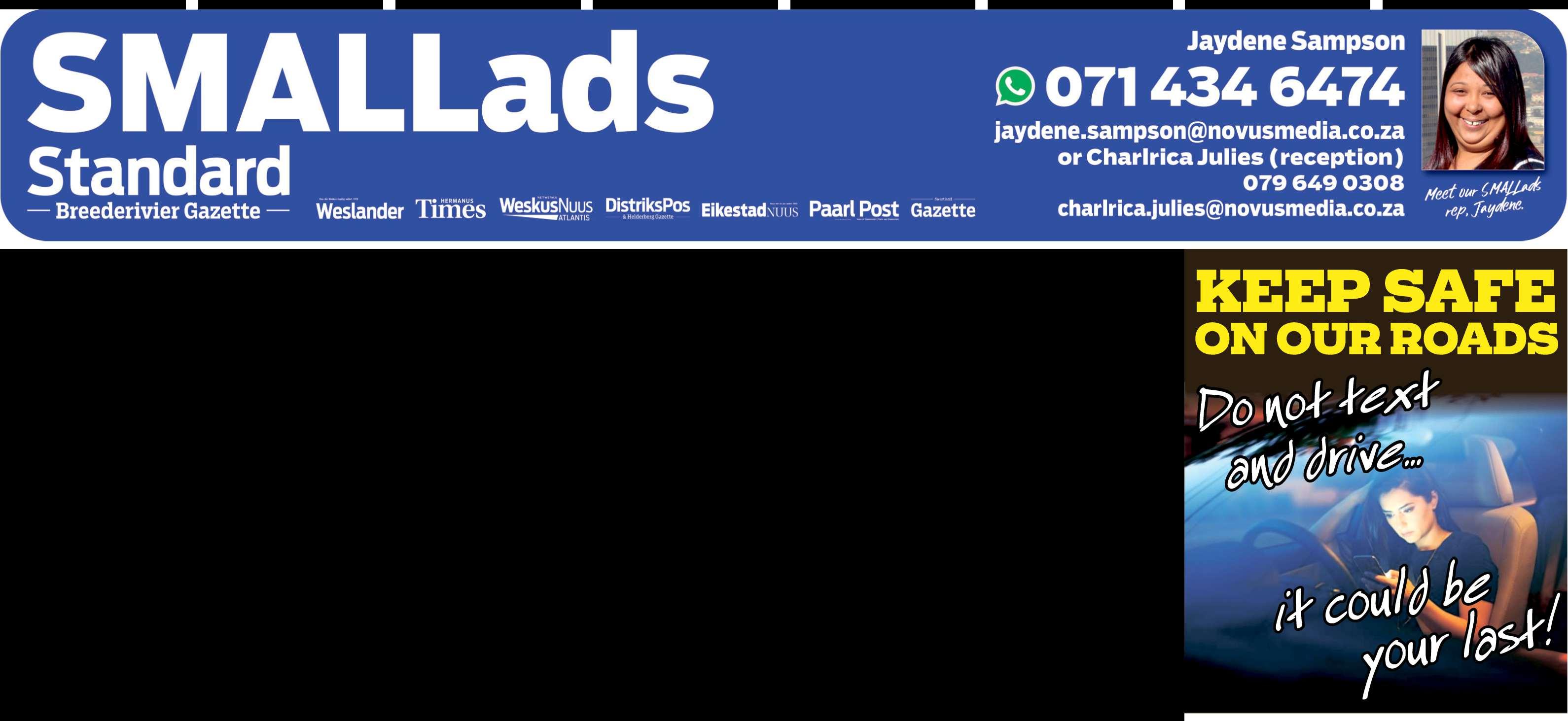 Is dit nie lekker om jou elke jaar voor die radio tuis te maak, na KFM te luister en te hoop dat jou gunstelingrestaurant of naweekwegbreekplekkie dalk die Best of Cape-toekennings sal maak nie? Dié kompetisie, wat elke jaar deur KFM aangebied word, raak al hoe gewilder en die Breederivier-omgewing het al deur die jare met ’n paar wenners gespog. Volgens die radiostasie het hulle met die inisiatief vorendag gekom om unieke ondernemings, onvergeetlike ervarings en gemeenskappe in die Wes-Kaap te vier “Die doel van die kompetisie is om enigiets spesiaal in jou omgewing en wat ’n verskil in jou lewe gemaak het, te erken en dan te vier,” sê KFM op sy Facebookblad “Deur die kompetisie moedig ons die publiek aan om dit ook te ervaar en ons as radiostasie het die geleentheid raakgesien om die beste in die Wes-Kaap op so ’n wyse te vier Vanjaar se benoemings het op 1Julie geopen en sluit op 11 Julie ” Vorige wenners van die omgewing is onder meer Avalon Springs buite Montagu (prys vir die beste hotel in 2021, 2022 en 2024) en 360on62 Cottages (die beste naweekwegbreek in 2021 en 2023) Die streek het ook al baie benoemings gehad •Besoek www bestofthecape primedia-plus com en help jou gunstelingwinkel of -wegbreekplek die kortlys haal
