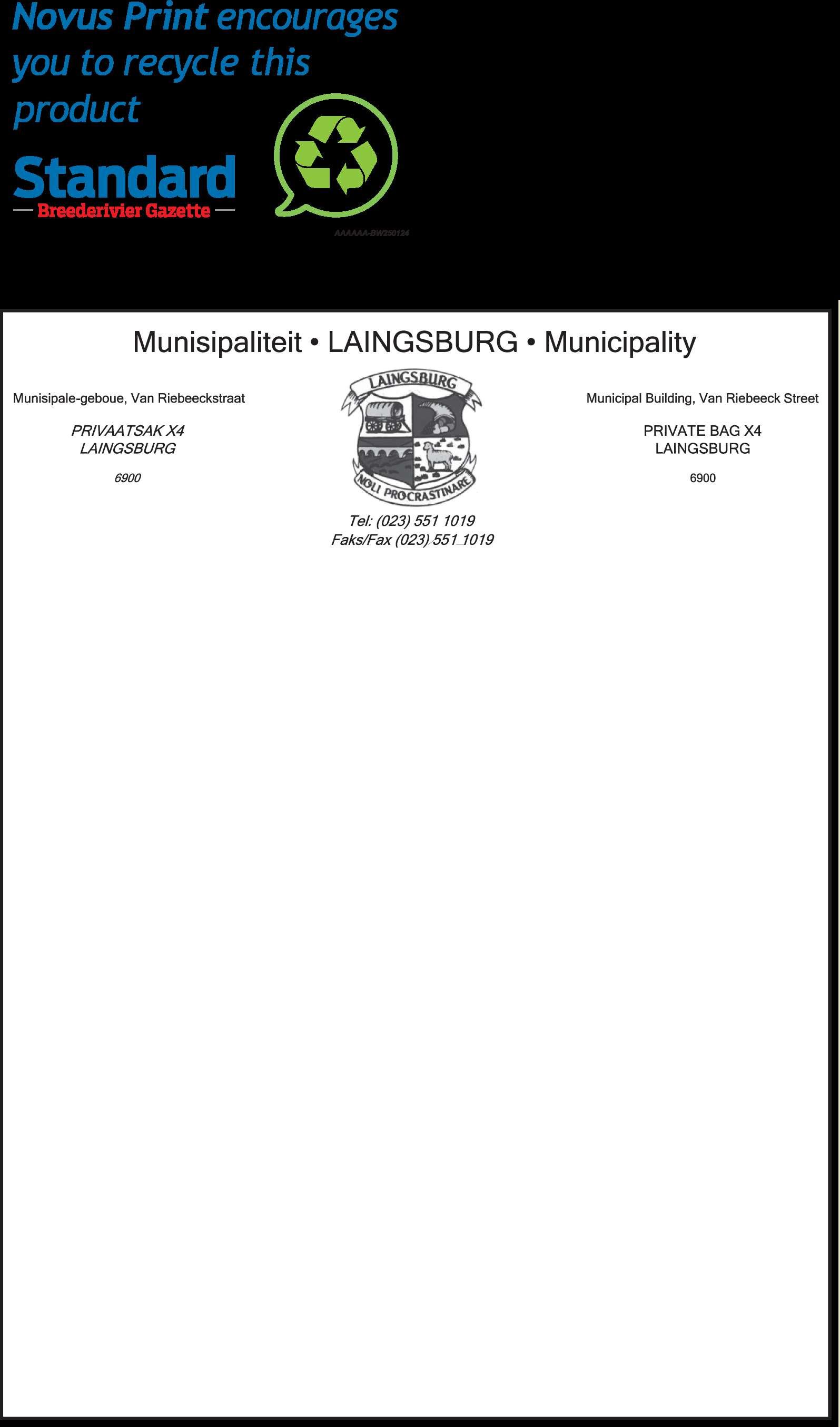 Navrae kan gerig word aan Mev N Malaka (023) 348 2631/ nma aka@bvm gov za