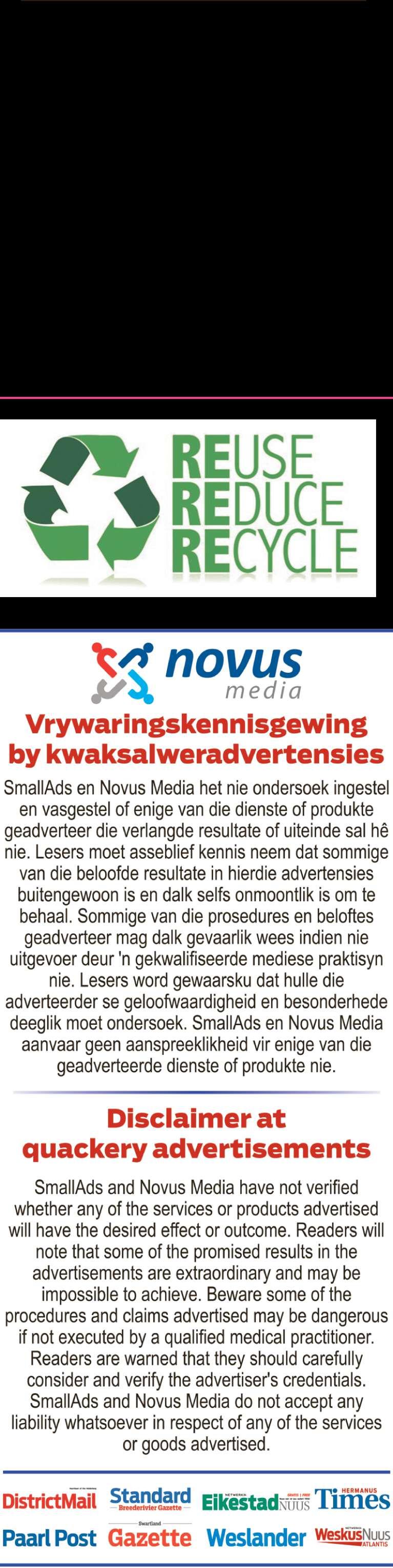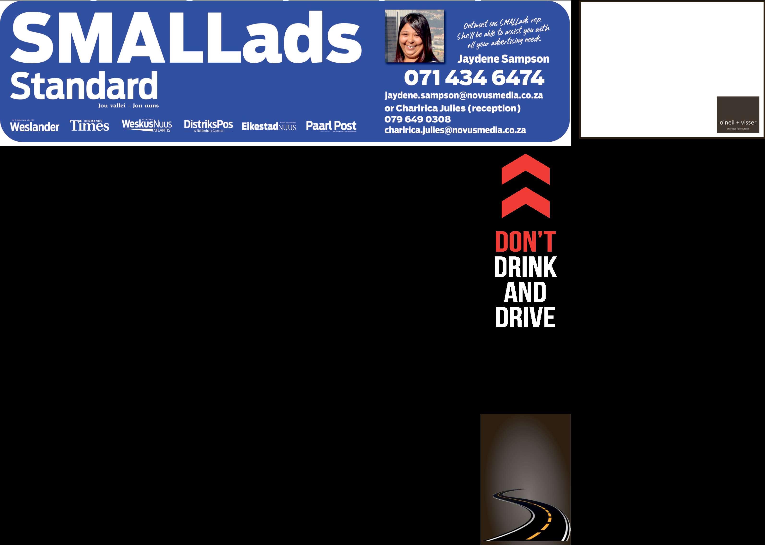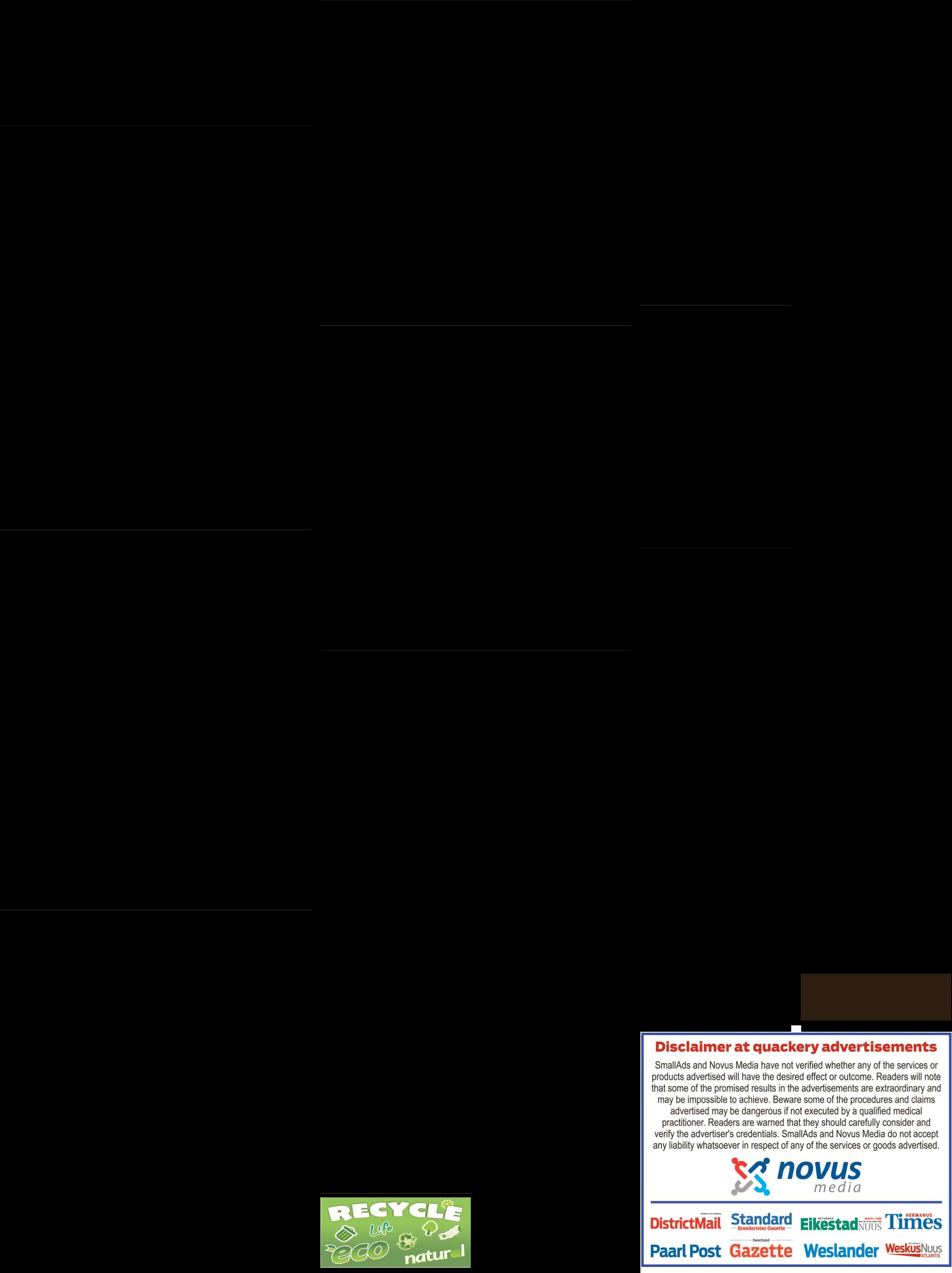 Besware en/of kommentare in terme van Art ke 49 van die Munisipale Grondgebruiksbeplann ng Verorden ng, moet skr ftelik ger g word aan d e Munis pale Bestuurder Pr vaatsak X3046 Worcester 6849 voor of