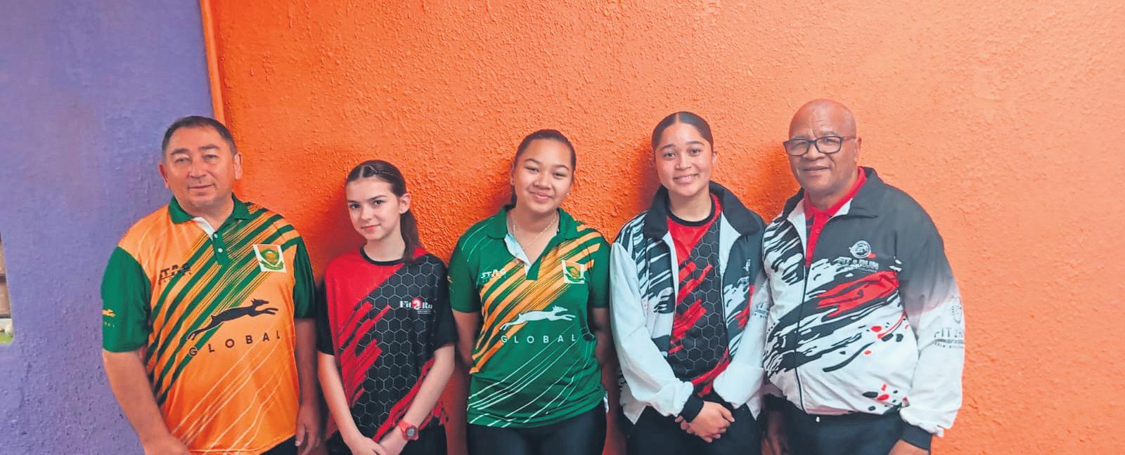 Graham van As (afrigter van die nasionale tafeltennisspan), Robyn Blom, Tamika van As (nasionale kampioen in die afdeling vir meisies o.13 en o.15), Tamzin Human en Henry Philander.