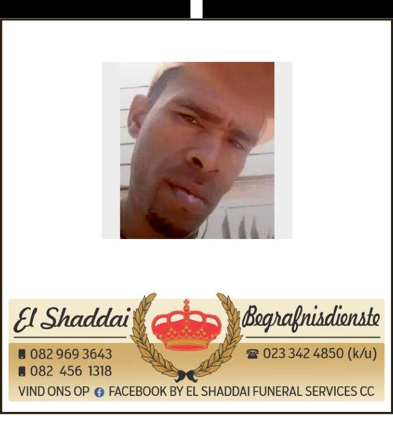 Begrafnisdiens vind plaas Saterdag, 02 Augustus 2025 om 10:00 by Reiersrus Boerdery, Aan De Doorns en om 11:00 by Maranatha Christen Gemeente, Denisestraat, Johnsonspark.