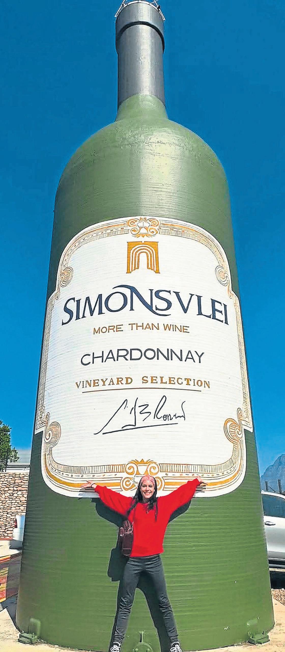 Conradie sê sy het dié reuse-bottel reeds in 2023 die eerste keer geverf toe Simonsvlei se Vineyard Selection Chardonnay destyds bemark is