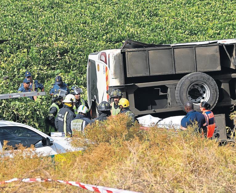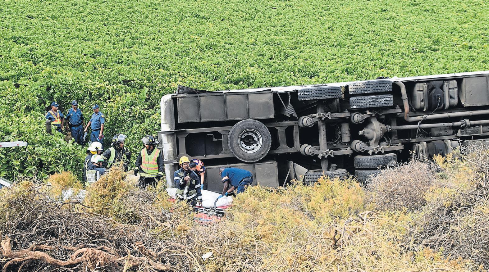 Atrip fromPretoria to Cape Townended in tragedy on Monday (26January) when apassenger busoverturned just outsideWorcester in the Western Cape. Two women losttheir lives. Passengers were looking forward to the end of along trip,when the accident happened justbefore 07:00 near De Wet Cellars. The busapparently left the road,ploughed through the barrier and rolled downa steep embankment into avineyard