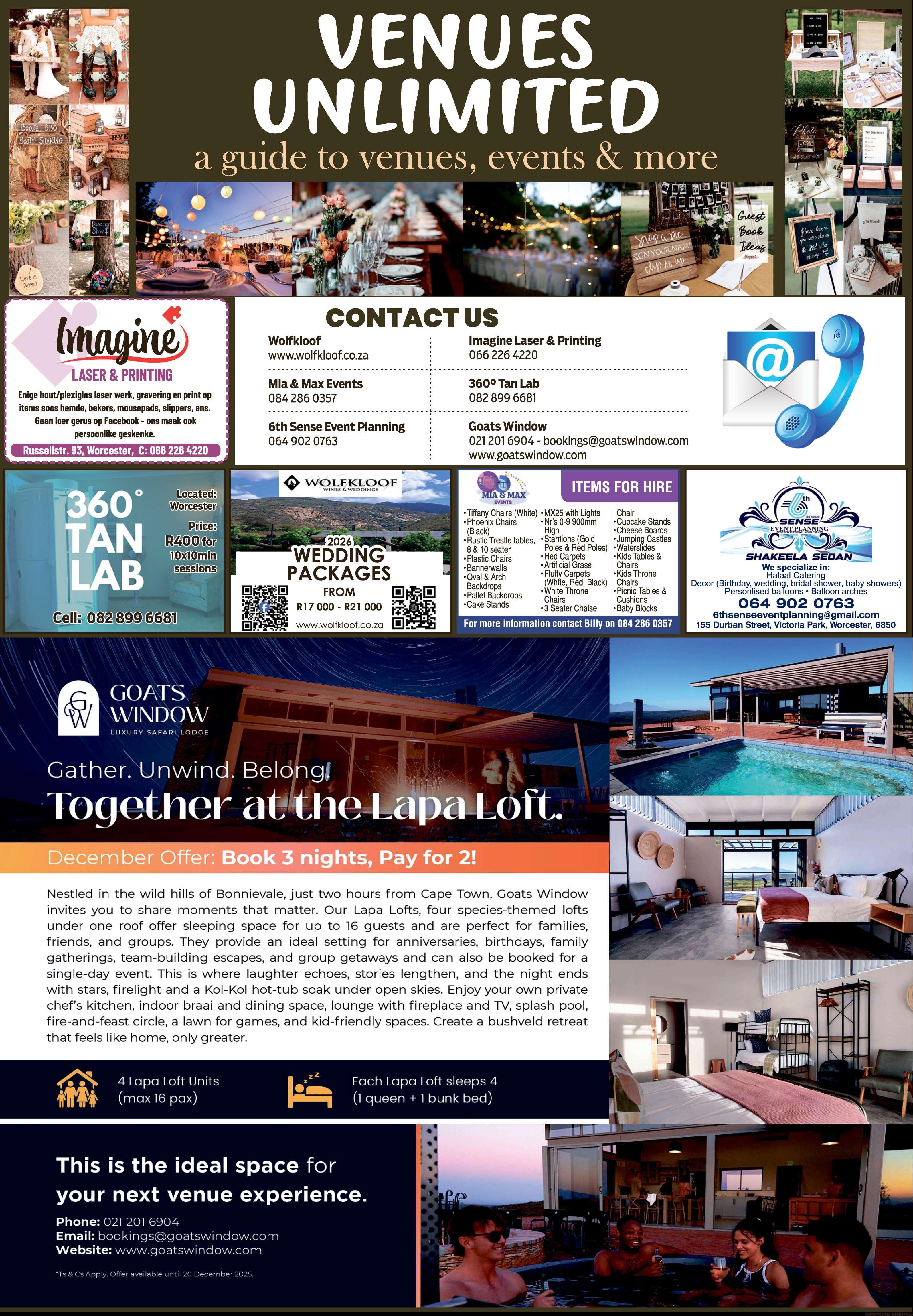Met 2025 wat tot ’n einde loop, het Luna besluit om ’n laaste optrede vir die jaar te hou voordat sy terugkeer na die ateljee om aan ’n nuwe produksie te werk. Die optrede vind Sondag 7Desember by die Montagu-stasie in Kohlerstraat 10 plaas Die deure open om 13:30 en die vertoning begin om 14:00. Kaartjies kos R175 en eie drank word toegelaat. Skakel 0662665145 of stuur e-pos na hello @konkelwyn.com vir kaartjies