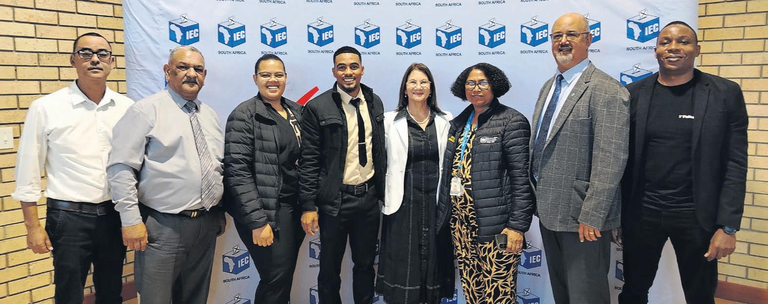 Van links staan Lionel Cicero (skoolhoof van Wesbank Sekondêr),Denver Walbrugh (kringbestuurder),Brene Simons (Veilige Skole: departement van onderwys),Zidane Williams (departement van onderwys),Anlerie Truter (direkteur van die Weskus-onderwysdistrik),Mary-Joan Swartz (onderwysspesialis),Michael Hendrickse (hoofverkiesingsbeampte in die Wes-Kaap) en Wellington Radu (streeksbestuurder van FuturElect)
