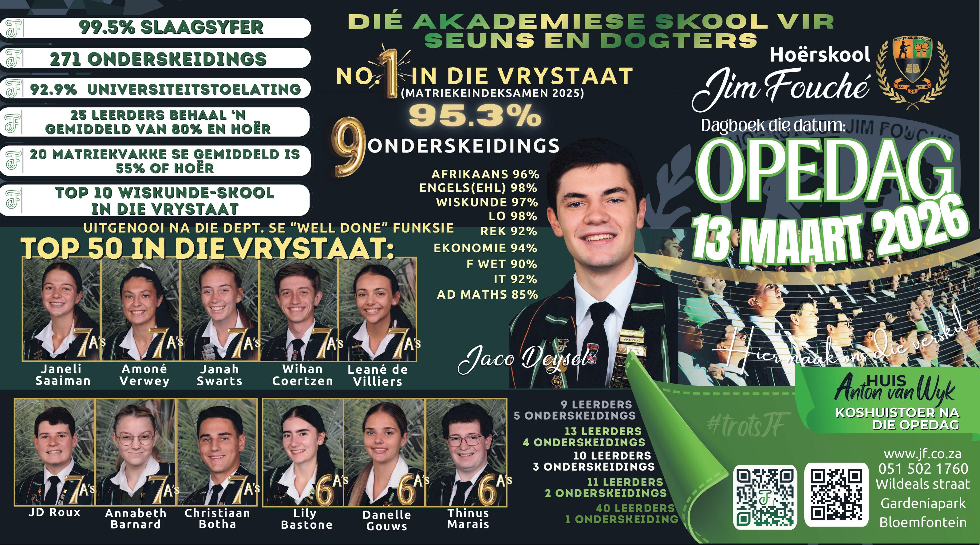 Die Hoërskool Jim Fouché in Bloemfontein is só ’n plek – nie net nog ’n vervelige skoolgebou met klaskamers nie, maar ’n lewende landery waar waardes geplant, karakter versorg en drome met geduld en doel gekweek word.
