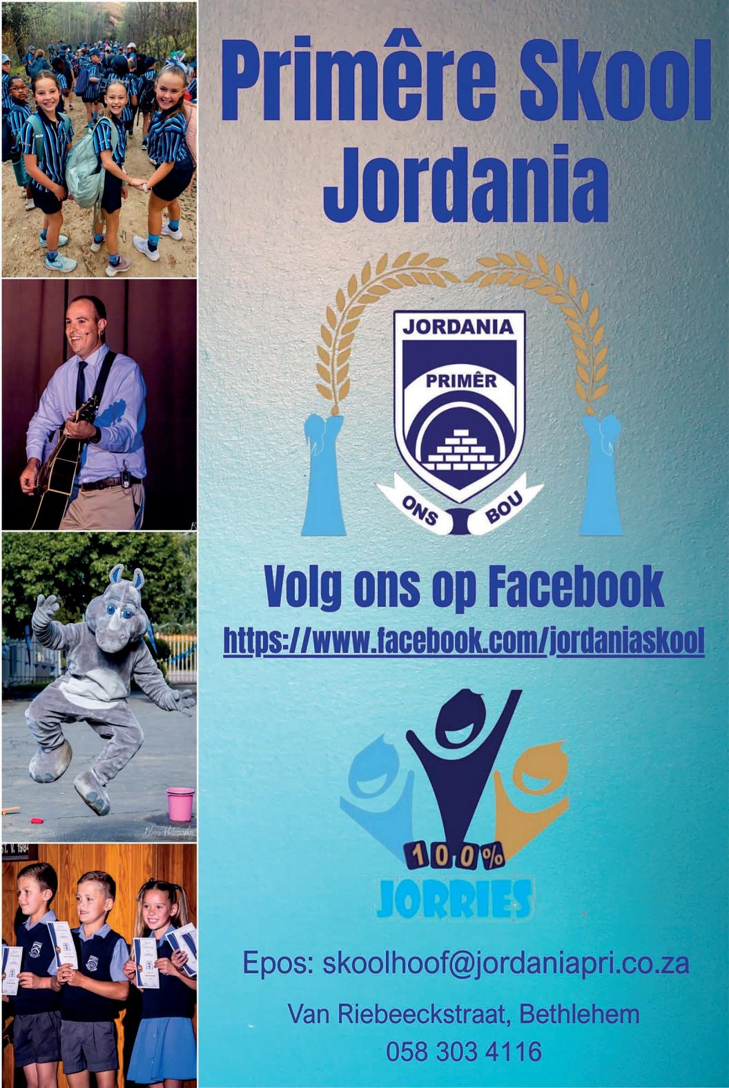 Leerders van die Primêre Skool Jordania groei saam, nie net op akademiese-, sport-, en kultuurgebied nie, maar ook saam in geloof. Jorries vir Jesus word weekliks by die skool in Afrikaans aangebied. By Jordania is daar waarlik iets vir elke leerder om sy of haar volle potensiaal te bereik, gawes en talente te ontdek, te ontwikkel en te gebruik en poog die skool om ’n positiewe opvoedkundige atmosfeer te kweek.