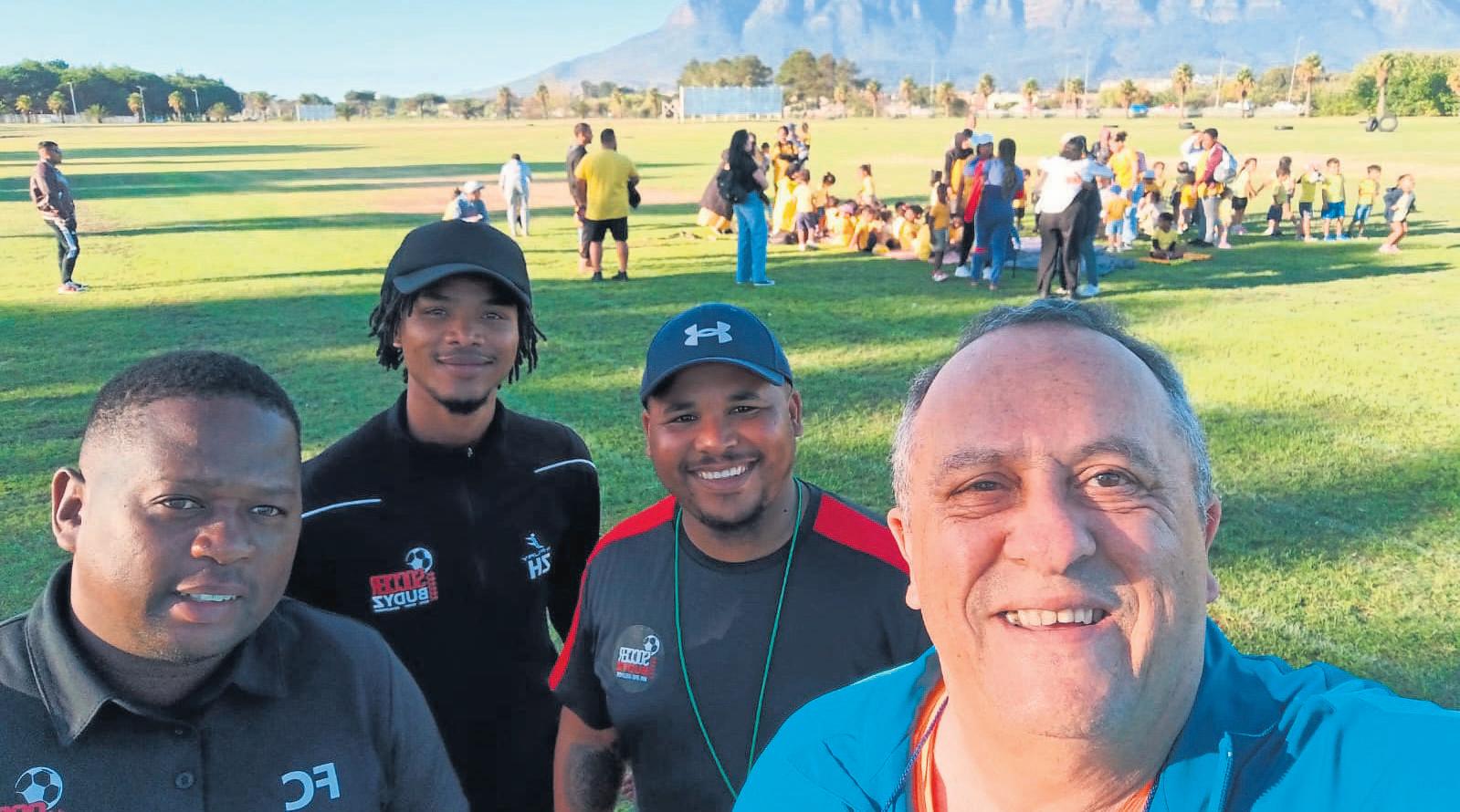 nder and coaches of Soccer Budyz at the sports day of t Fernando Classen founder Malunga Siyaka and Xolile