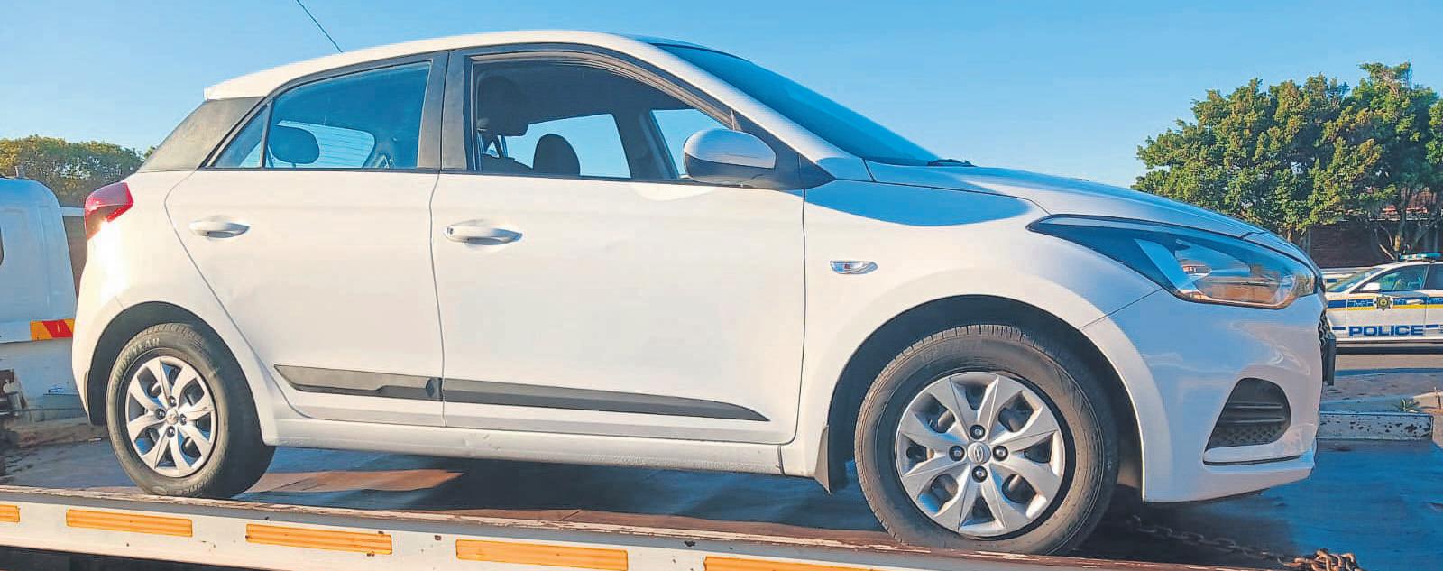 The white Hyundai used in an armed robbery in Goodwood on Thursday 24 April