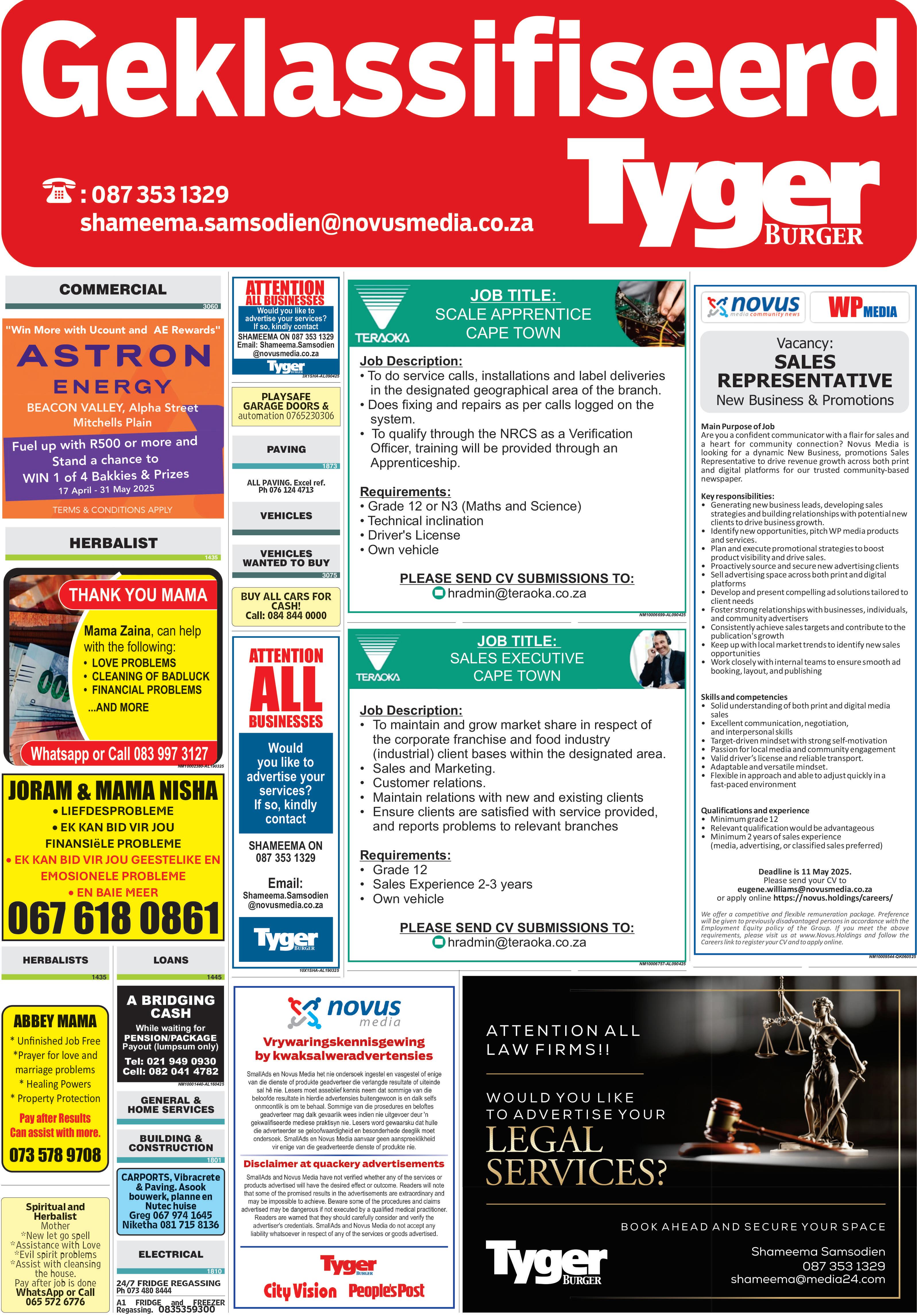Vir enige verspreidingsklagtes skakel 021 910 6500 of e-pos verspreid ng@tygerburger co za