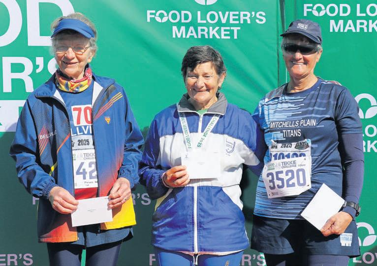 Vroue 10km 70+ van links: Maryna Vos (Bellville, tweede),Helen du Plessis (Brackenfell,eerste) en Ursula George (Mitchell’s Plain,derde)