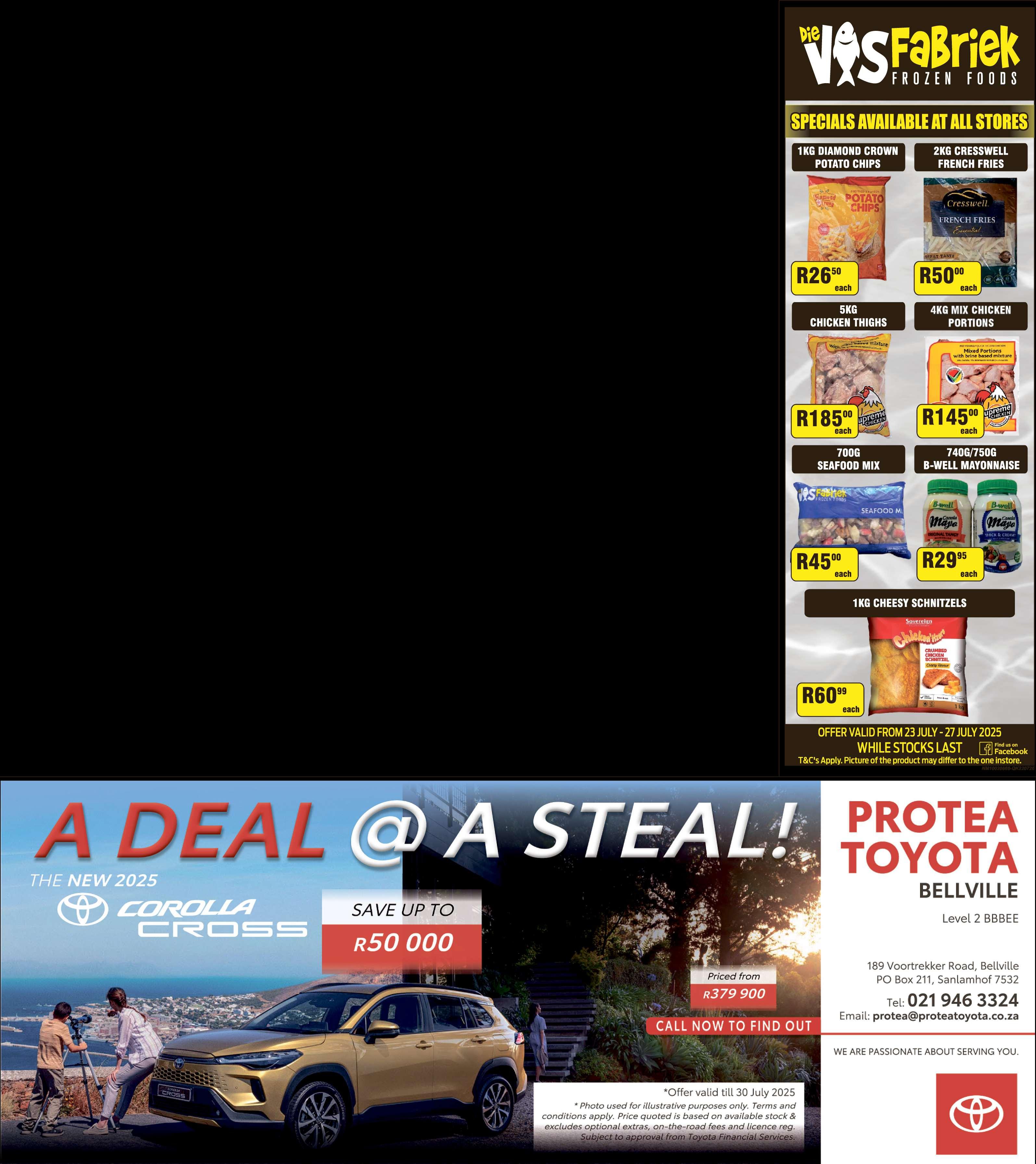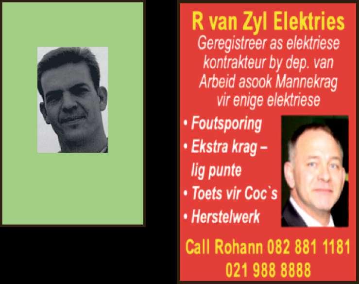 . Die Brackenfell Forum bied aan "Koffie uit jou kan" in die Rusoord-saal in Dennegeurstraat om 10:00 vir lede van die gemeenskap om saam te kuier Kaartjies beskikbaar teen R150 per persoon. Besprekings: Alta by 083 967 9493 of Letitia by 082 879 5383.