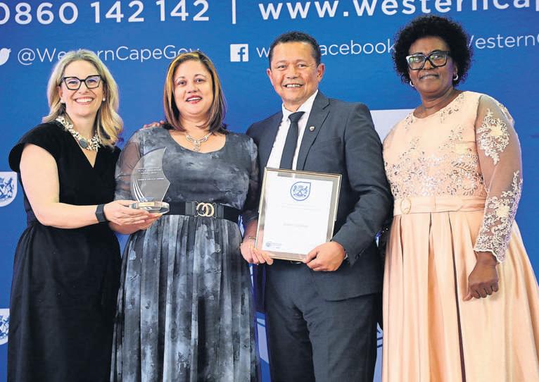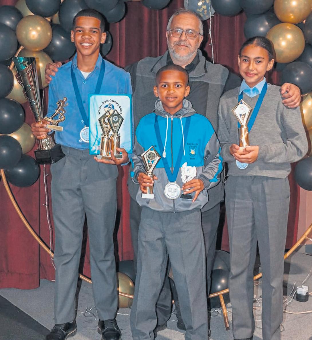 QI Heinrich,hoof van die Laerskool Bellville-Suid,met sy drie WP-landloopatlete,Sezario Tafel,Qwin Vass en Briana Fortuin