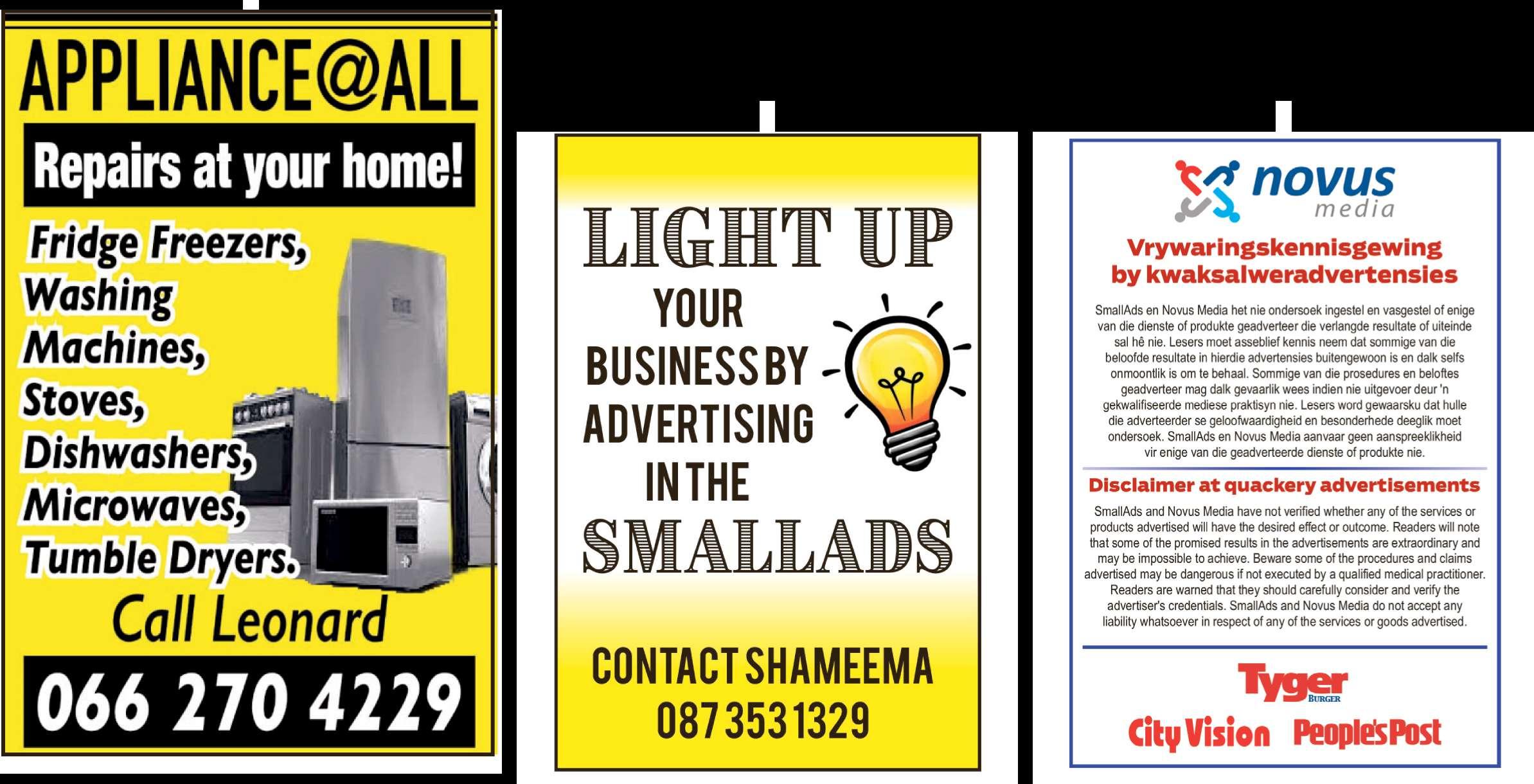 AANDAG ALMAL kontant vir enige huis-houdelike goed klere, skoene, beddegoed, gordyne, speelgoed, oudhede, juweliersware - goud, breekgoed, potte, elektroniese ware. MEUBELS yskaste, beddens, Sitkamerstelle, tv's (en baie meer) Johan 074 474 4275 ONE STOP HANDYMAN For all Electrical/Plumbing and General repairs: Ph: CHRIS - 082 6611 943