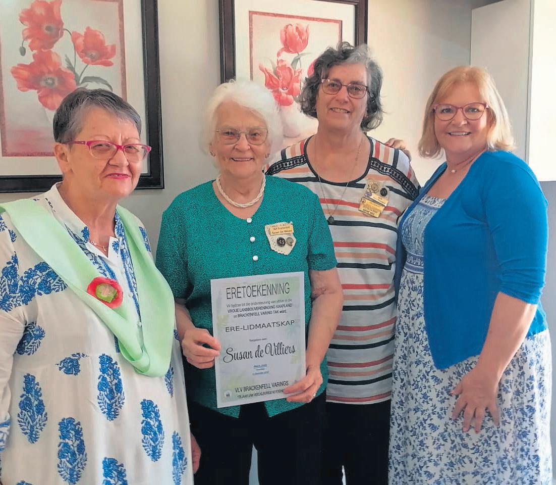 By VLV Brackenfell-Varings se afskopvergadering is `n eerbewys vir lang diens,getrouheid, deelname en prestasie oorhandig aan hulerelid, Susan de Villiers van Othello.