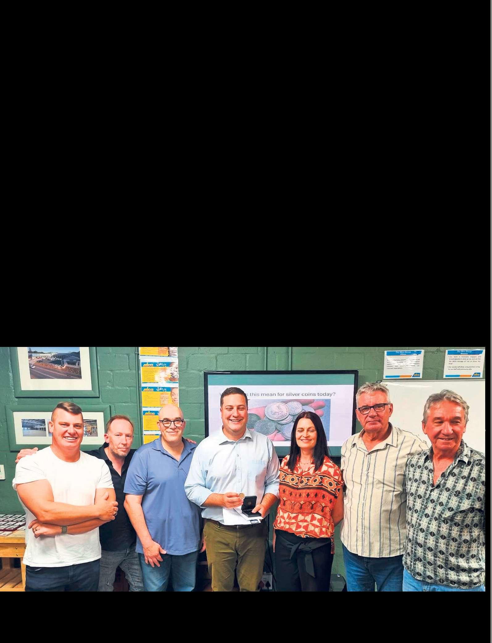 TheWestern Cape NumismaticSociety,acoin andbanknoteclub,hadbestowedpatronship of the society on themayor of Cape Town,Geordin Hill-Lewis(middle),at its annualgeneral meeting on Saturday21Februaryin Durbanville.With him arethe committee members,(from