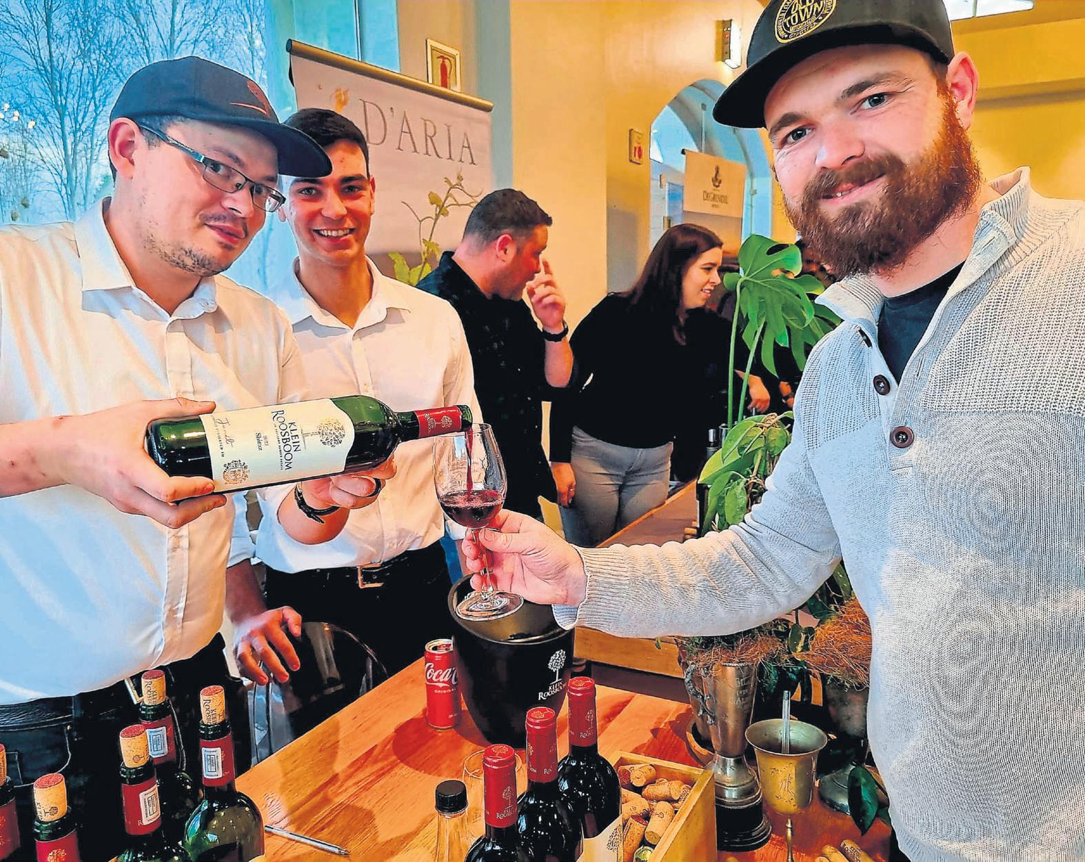 The glass of Sven Susdorf from Brackenfell is being filled by Darrin Losper from Klein Roosboom In the centre is Keanu Eksteen,also from Klein Roosboom