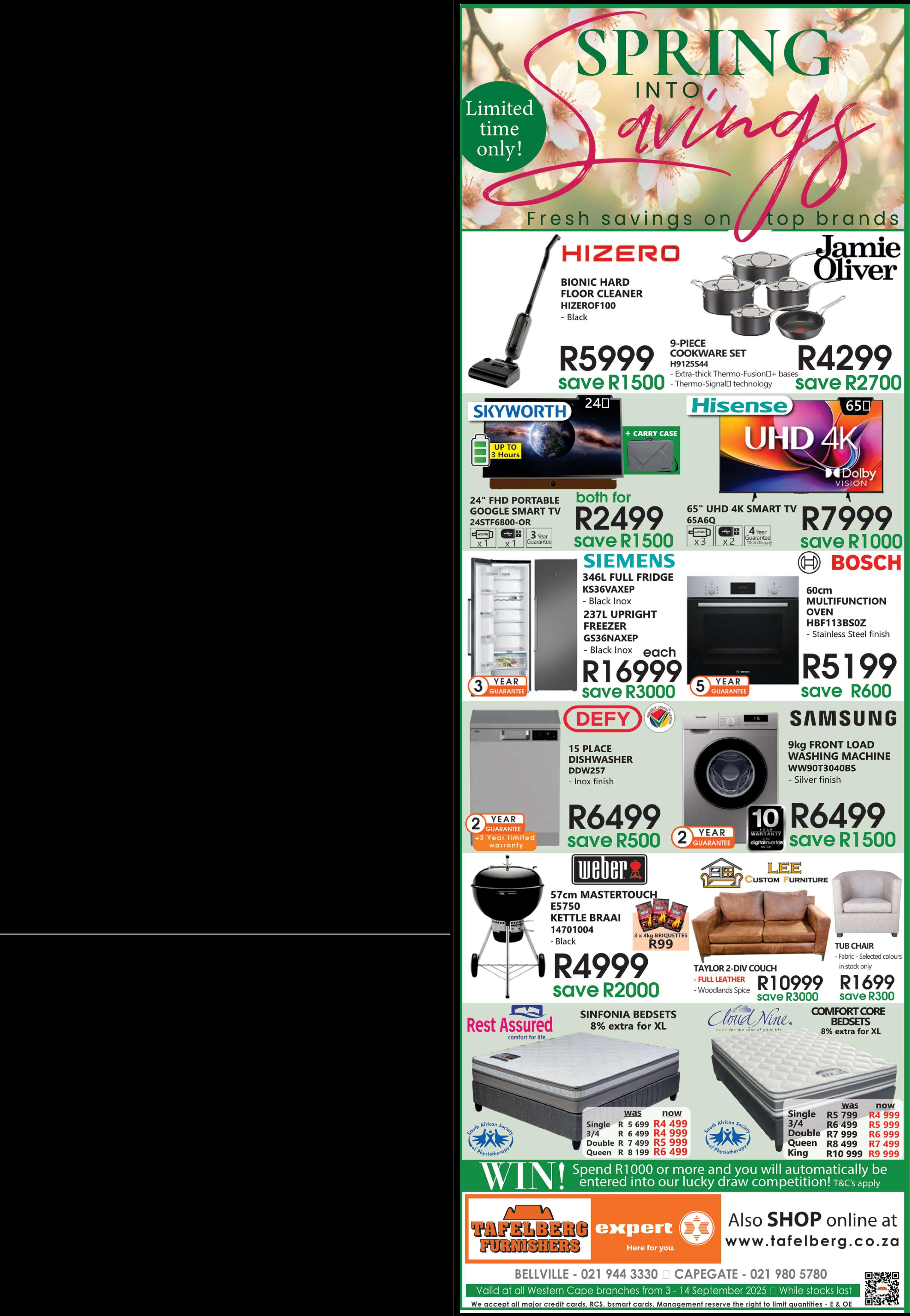 . 'n Kursus oor uitbranding en angs word op Vrydag 5 September van 18:30 tot 21:00 en op Saterdag 6 September van 15:00 tot 21:00, by Doxa Deo by Willowbridge aangebied. Die koste is R250 per persoon en sluit 'n werkboek, verversings en aandete die Saterdagaand in. Registreer voor 2 September by https://login.churchsuite com/?account=doxadeocape Kontak dr Anique Tredoux by anique tredoux@ gmail.com met navrae . Kom geniet die humoristiese konsert Die Begrafnissangers by die NG kerk Bellville-Riebeeck om 19:00 in die De la Haye-kerksaal. Kaartjies kos R50 vir volwassenes en R20 vir kinders (2–10 jaar). Heerlike hamburgers en pannekoek is te koop Bespreek by 021 919 1501 of koop kaartjies by die deur . Philadelphia se gewilde tradisionele boerebasaar vind plaas vanaf 17:00 op die kerkplein in Philadelphia 'n Aand vol kuier, kos en tradisie wag op jonk en oud. Die fees word weer soos altyd, om 18:00 met 'n regte haelgeweerskoot oopgeskiet Toegang is R10 per persoon en gratis vir nie-skoolgaande kinders Kaartfasiliteite sal orals beskikbaar wees. Rig navrae aan Annemart Agenbag by 072 431 2831.