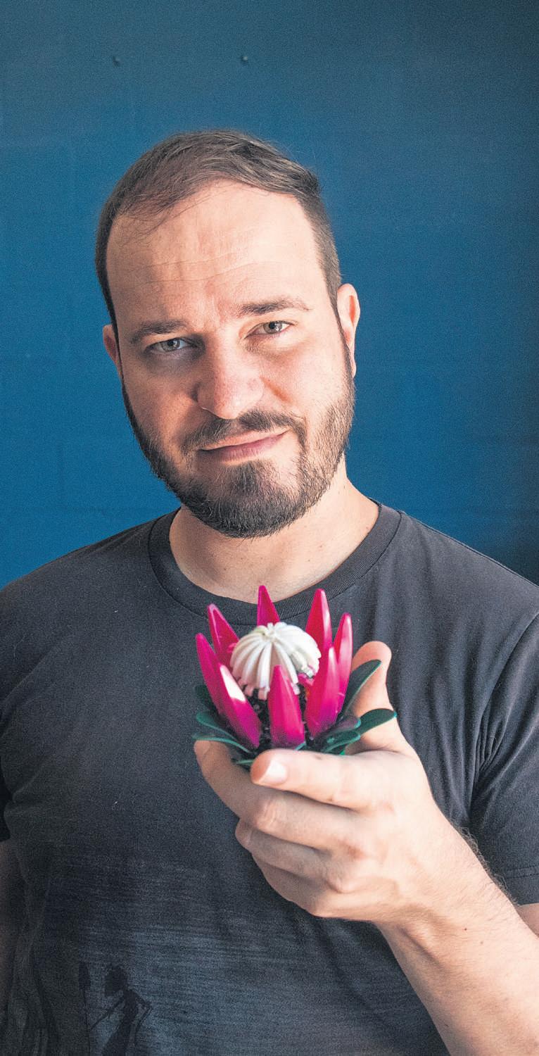 Christoff van Wyk with Lego protea flower