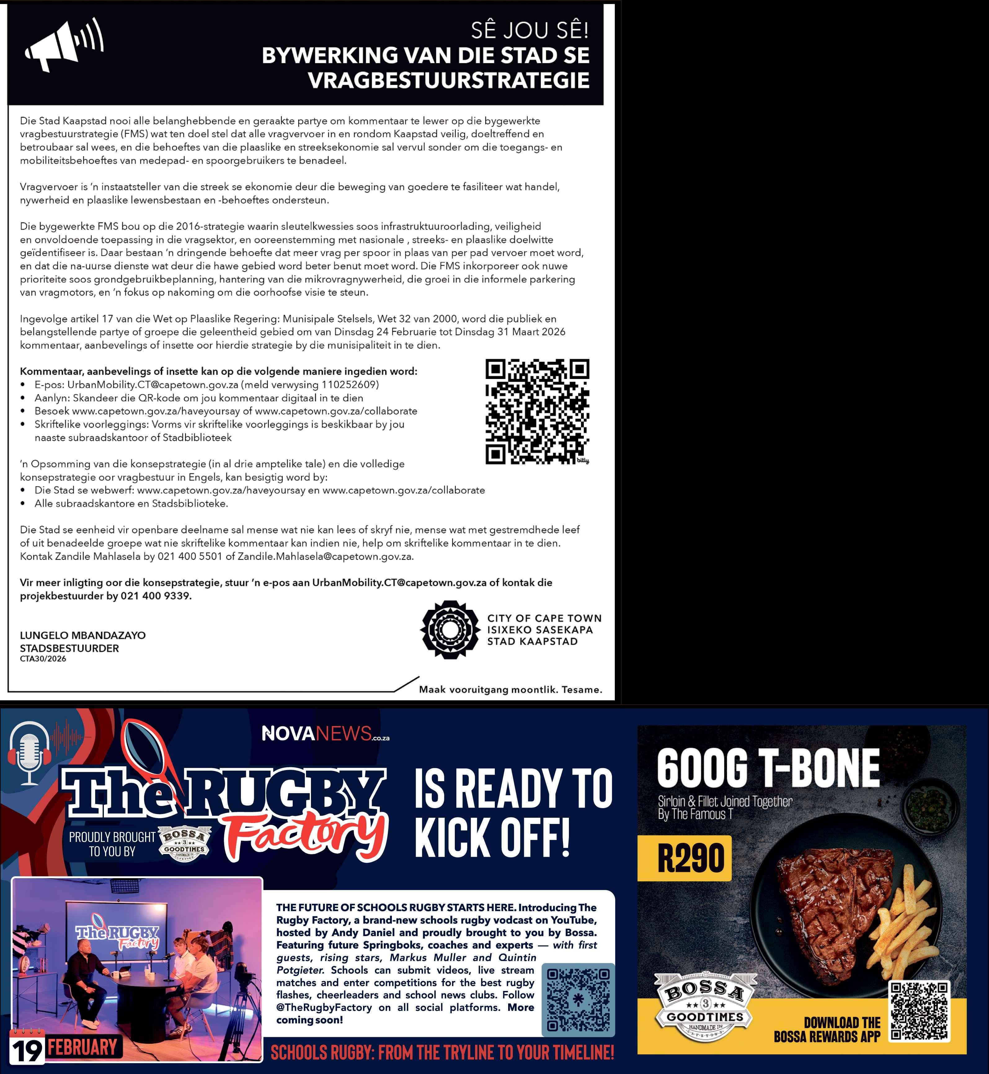 •Van 20 Februarie 2026 tot 31 Maart2026:Persoonlik -gedurendedie bedryfstye vandie lokale viropenbareinsae en besware hier onder