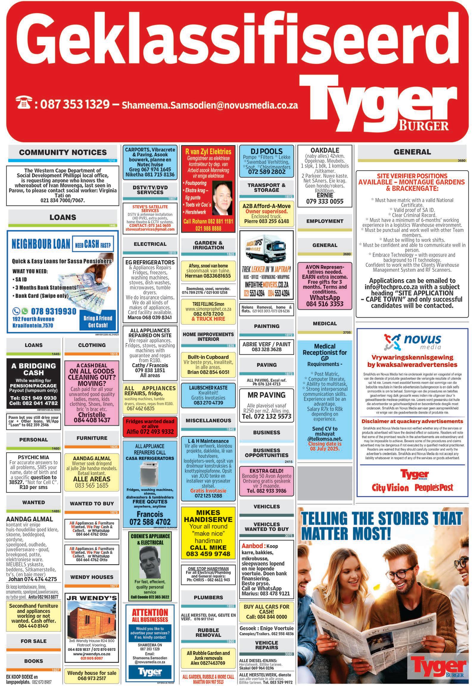Virenigeverspreidingsklagtesskakel0219106500ofe-pos verspreiding@tygerburger.co.za