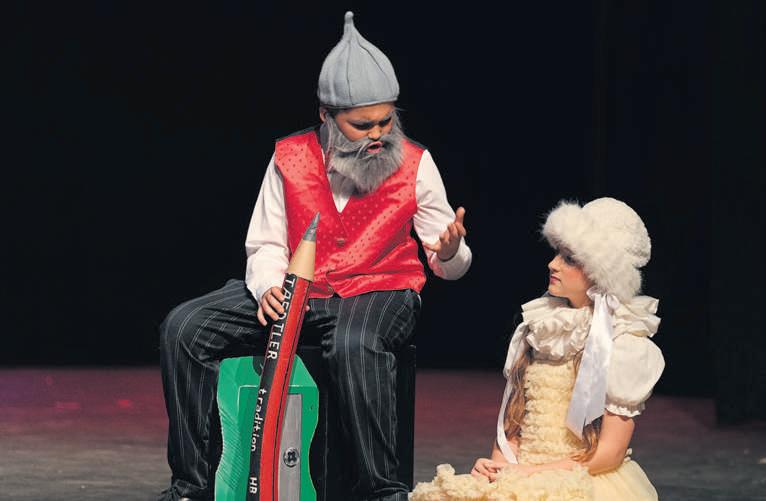 JP de Wet (gr 4) as Oom Potlood en Maya Visagie (gr 4) as Uitveër in‘n toneel in Potloodsakkie - agter die zip deur die Laerskool Durbanville FOTO: NARDUS ENGELBRECHT