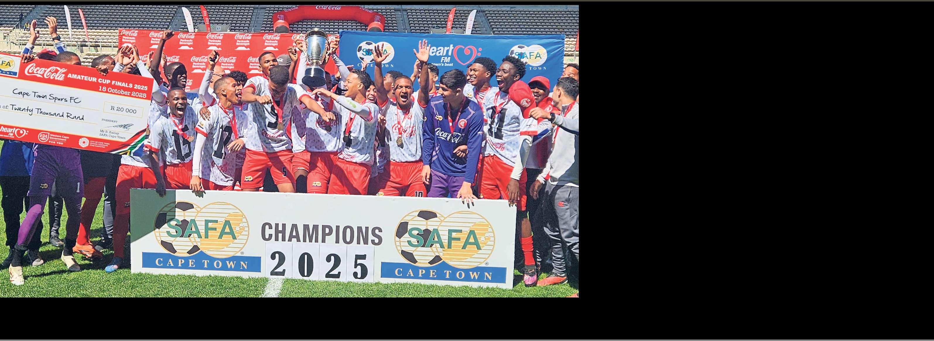 Winners of the SAFA Cape Town Coke cup u-18 trophy,Cape Town Spurs,celebrate after beating Everton FC 2-0 on Saturday 18 October at Athlone Stadium The academy club walked away with the R20 000 prize money PHOTOS: RASHIED ISAACS