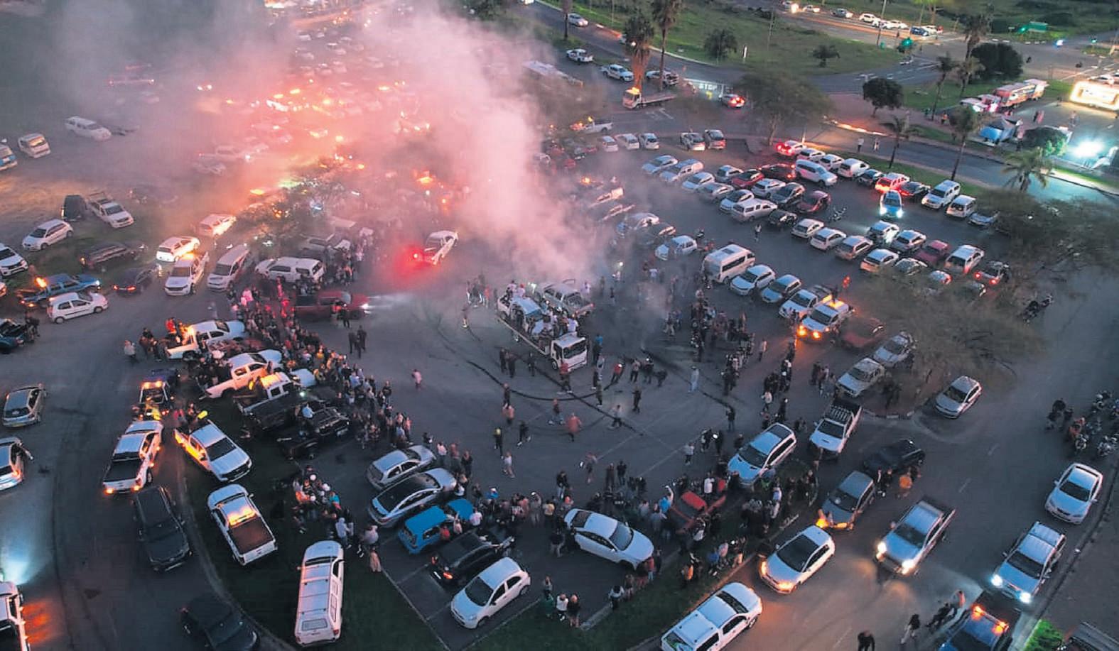 The gathering on Friday evening.Before leaving the Velodrome,a drifting car took a