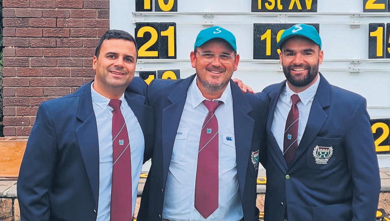 Divan Batt (links) staan hier by die mentors van die Hoerskool Stellenberg,Pierre du Preez en Andras Molnar