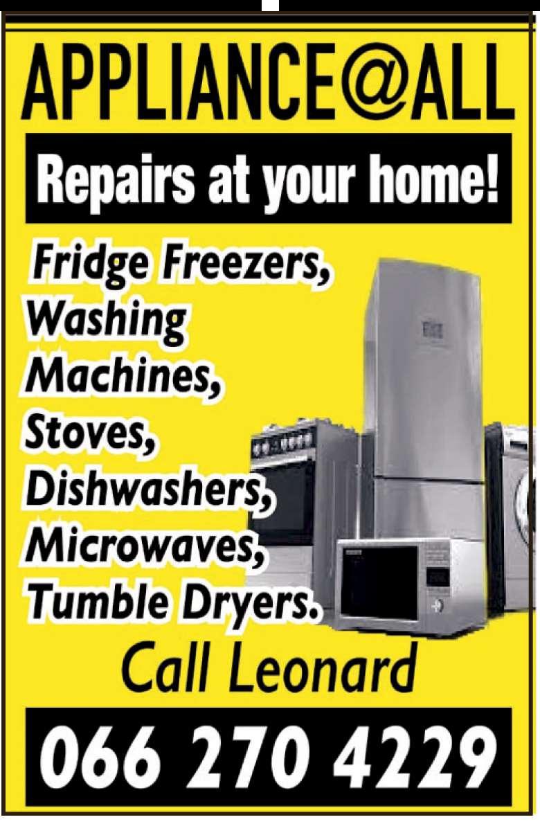 & Appliances Repairs Fridges, freezers, washing machines, stoves, dish washes, microwaves, tumble dryers. We do insurance claims. We do all kinds of makes of appliances. Card facility available. Marco 068 039 8341