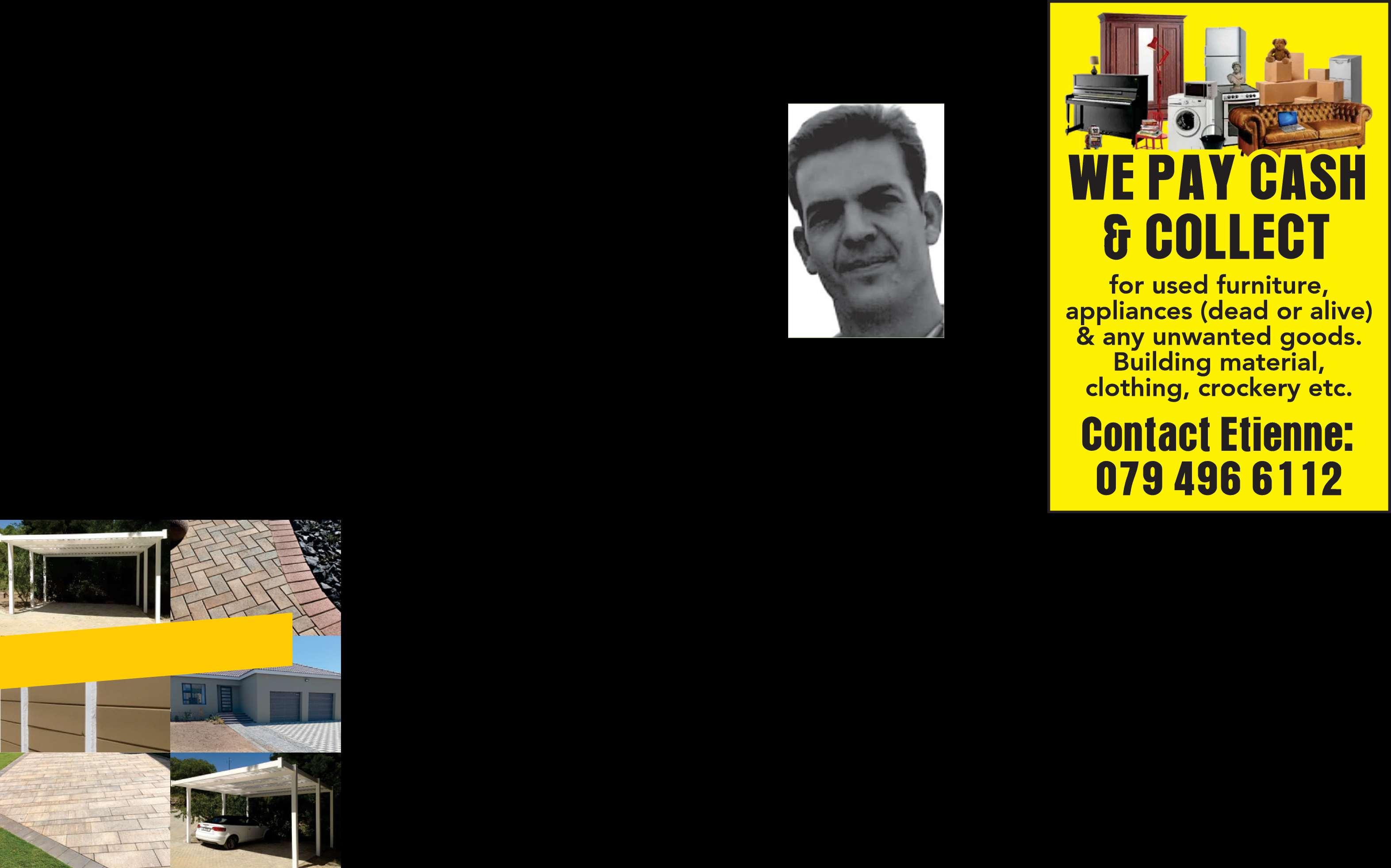 AANDAG ALMAL kontantvir enige huis-houdelike goed klere, skoene, beddegoed, gordyne, speelgoed, oudhede, juweliersware -goud, breekgoed, potte, elektroniese ware. MEUBELS yskaste, beddens, Sitkamerstelle, tv's. (en baie meer) Johan 074474 4275