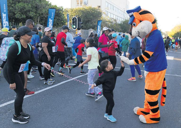 TygerBurger se Tier moedig deelnemers aan kort na die wegspring van die 5 km-pretloop.