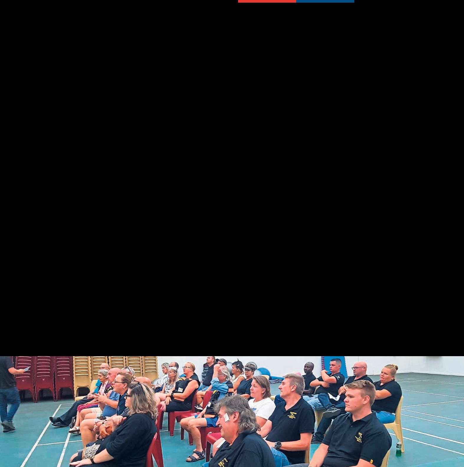 DF Akademie se leerderskyk toeterwyl dieskool se“flashes” uitgevoer word.DF Akademie het op die pawiljoen skoonskip gemaak deurbeide die“flashes”- en geesbeker te wen. FOTO’S:CARINAROUX