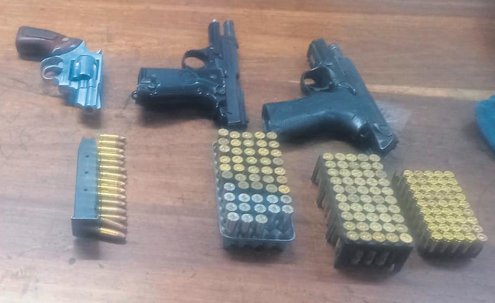 Inside they discovered a backpack containing three firearms and ammunition of various calibres