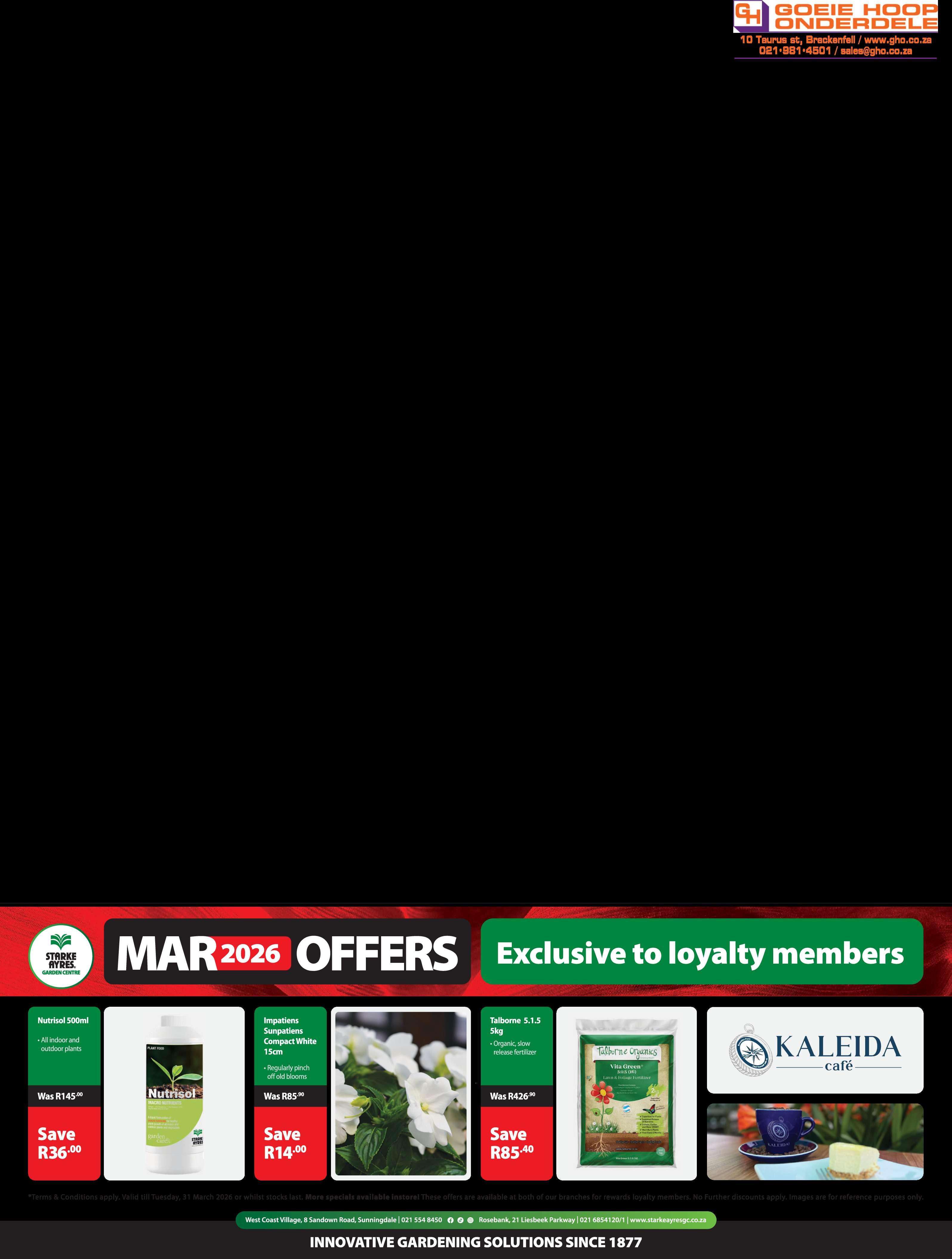 . Die AGSKuilsrivier-tehuis vir bejaardes (Care Village) bied van10:00 tot15:00'nherfsmarkaan op sy perseel by Kerkstraat17. Daar salmusieken 'n verskeidenheidvan stalletjiesweesombyte snuffel.Verdryf diehonger met'nwye keusewat insluit boereworsrolle,hamburgers en skyfies, kerrievetkoeke en vele meer