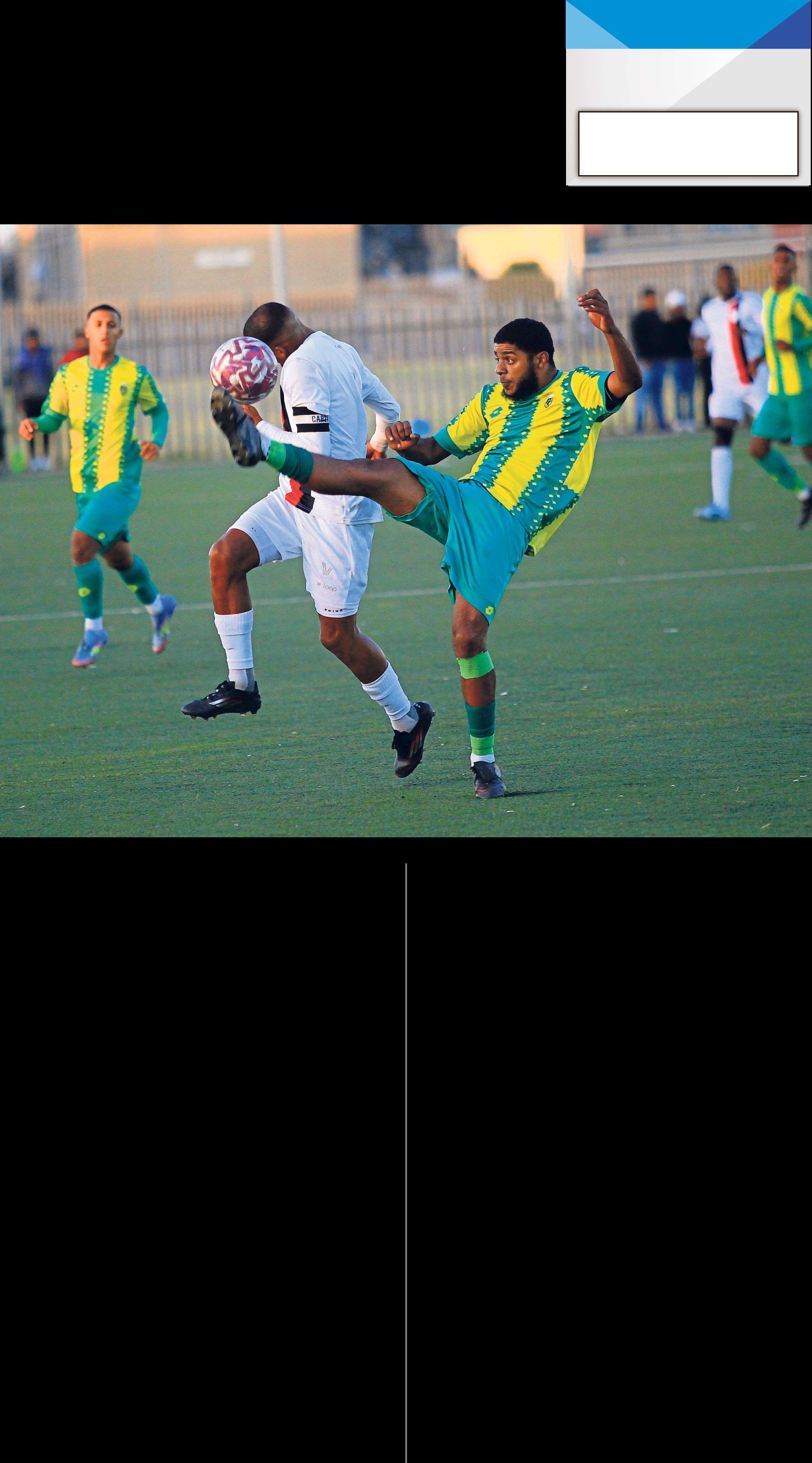 Keenan Charles of Junction Rovers FootballClub(FC)clears theballahead of achallengebyCraig Martin of Hope FC during an ABC Motsepe Second Division league game played in front of apacked Heideveld Sports Complex on Friday evening 23 January.Hope wonthe match 3-0 to keep their league titleaspirations alive. PHOTOS: