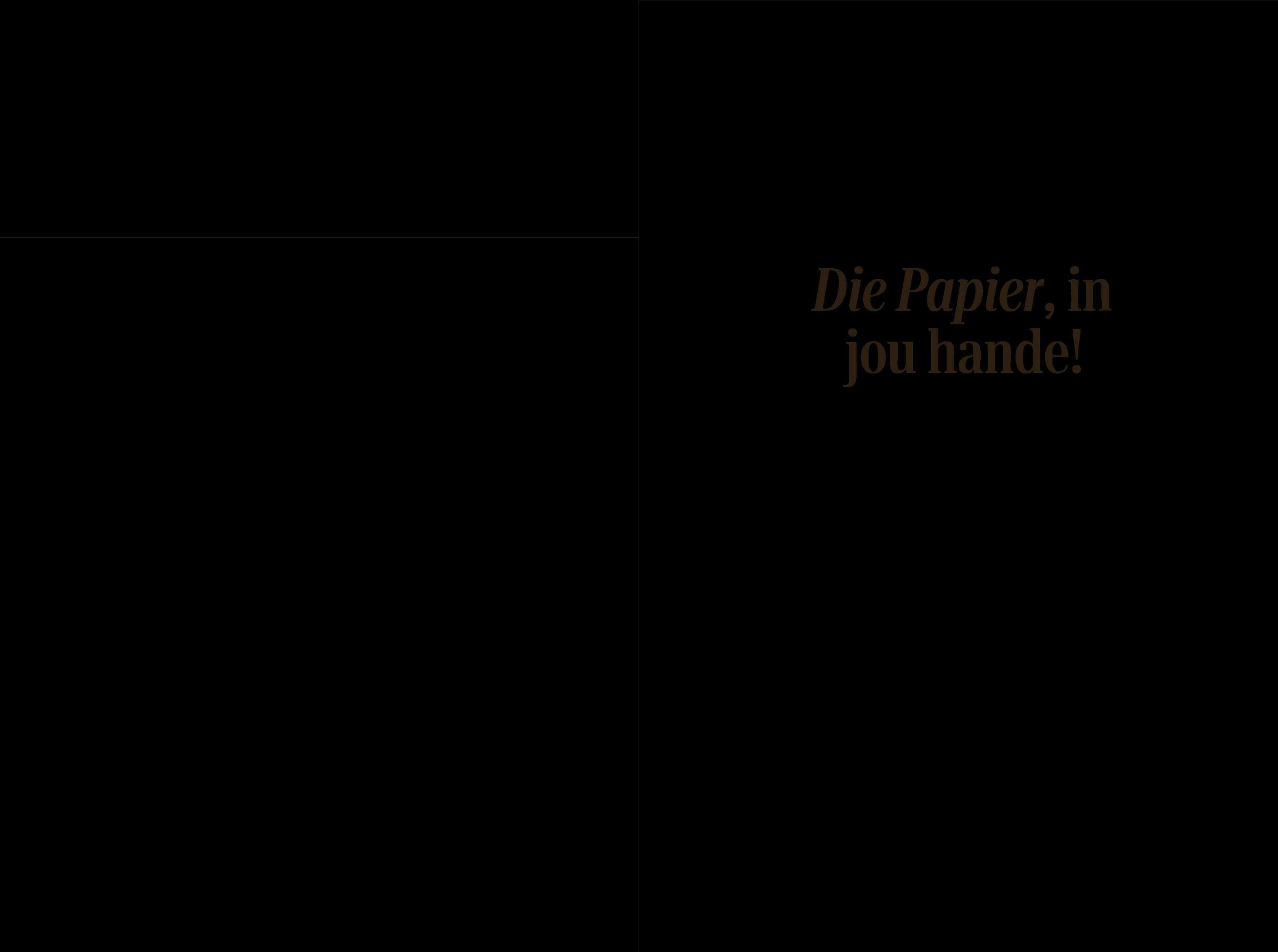 Wessel Pretorius is verantwoordelik virdie teks en regie.Die stuk is ‘n gesamentlike produksievan dieSuidoosterfees en dieVrystaat-kunstefees met ondersteuningvan dieHet Jan MaraisNationale Fonds. Dievertoningsbydie Suidoosterfees is in die Little Theatreopdie Universiteit vanKaapstad se Hiddingh-kampusopVrydag1Mei om 20:00, asook Saterdag 2enSondag3Mei om 12:30 Kaartjiesisbeskikbaar by Webtickets . Diestuksal ookop4 en 9Junie en van13tot 19 Augustus by DieBoer-teaterrestaurant op die plankewees. Bespreek by www.dieboer.com of by 021 9791911.