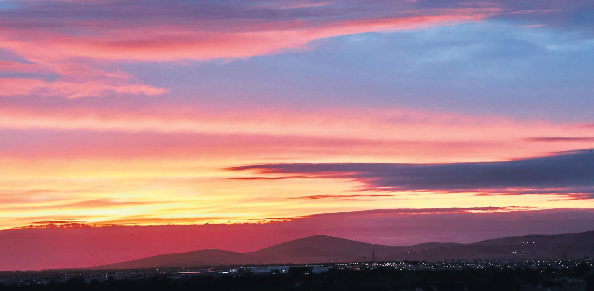 DIEOGGENDSTONDHETGOUDINDIEMOND: ’n Goue sonsopkoms verf die oggendlug in ’n rykpalet vanwarmkleureoor dieTygerberg,soosgesien vanaf Bloubergstrand.Dielig breek stadig deur die horison en skep ’n rustige,ampermagiese toneel watdie begin van’nnuwedag aankondig. FOTO:CHRISTA ROSSOUW