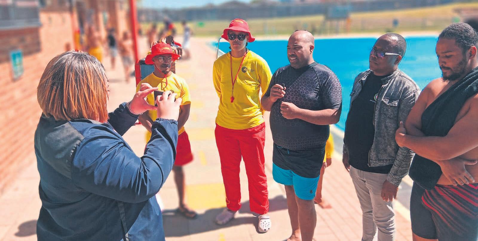 Sub-council 12 staff and lifeguards at Eastridge public swimming pool film a social media video about the opening of the pool on 3 October