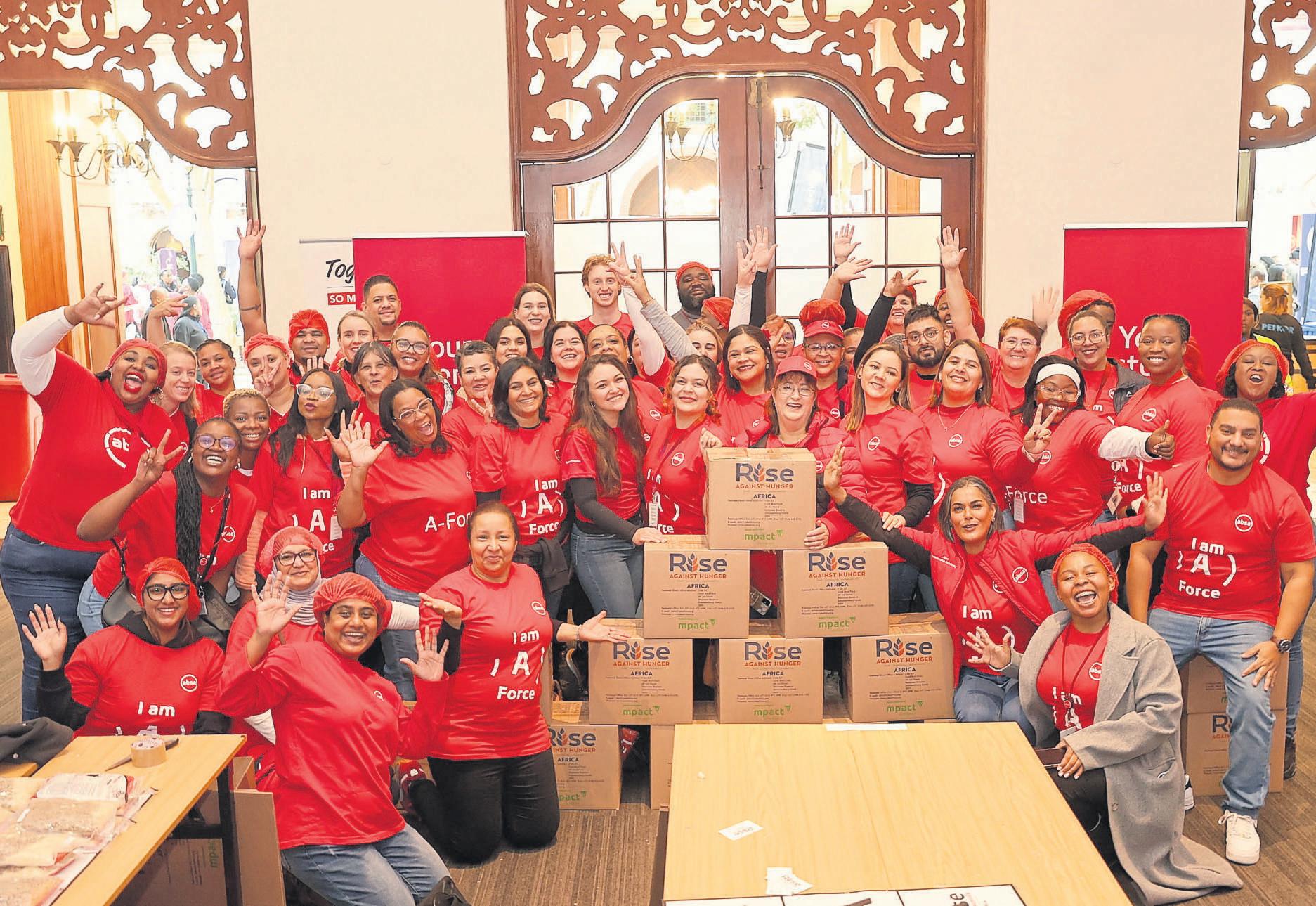 The event, organised by Rise Against Hunger (RAH) in partnership with GrandWest, brought together volunteers from corporate businesses including Nedbank, Standard Bank and Good Hope FM, as well as 42 learners and three educators from Elswood-, Bellville Southand Rocklands High Schools From 09:00 to 13:00, the Market Hall buzzed with energy as 24 teams, each with 432 volunteers per session, worked in synchronised production lines, packing a staggering 240 624 meals These meals will feed over 1 046 children for a full year through various school feeding schemes