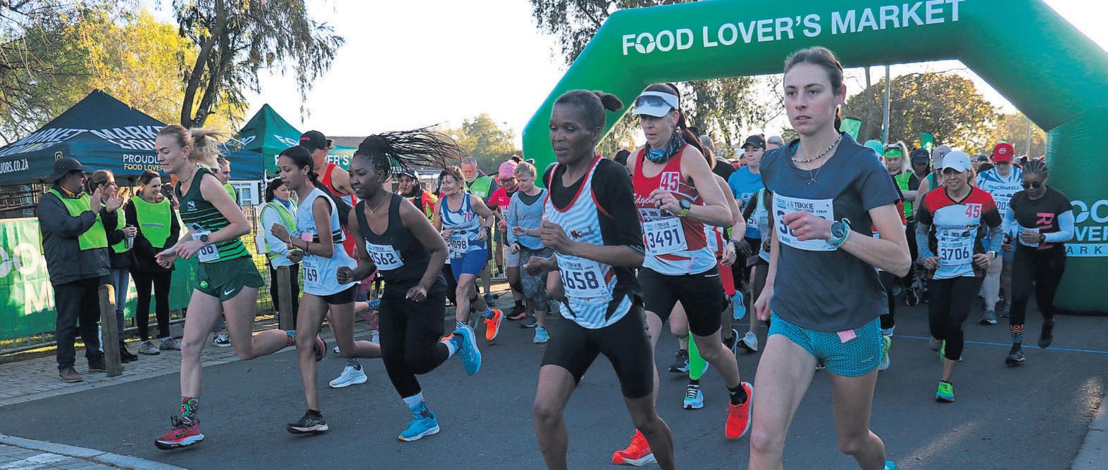 Die hardlopers spring weg in die 10 myl of 16 km-wedloop FOTO’S: CARINA ROUX