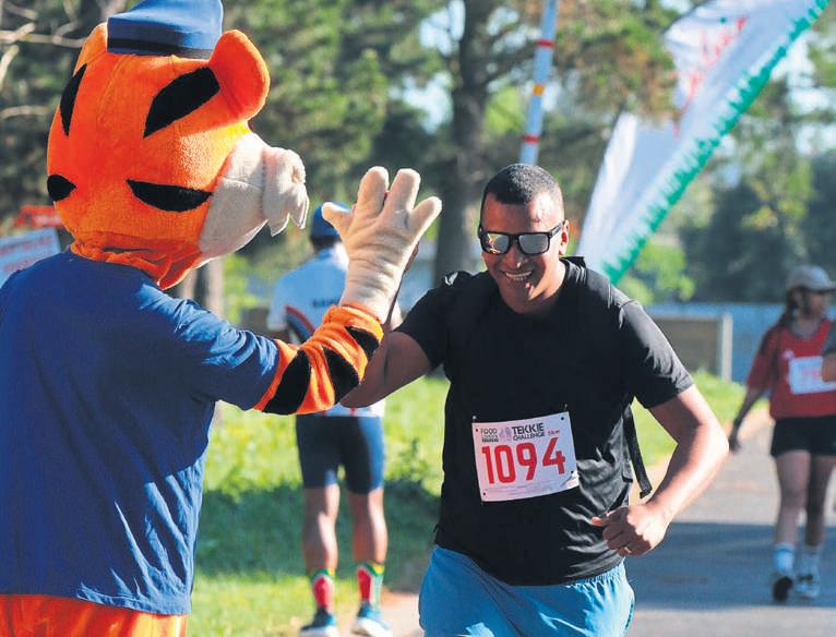 TygerBurger se Tier moedig deelnemers aan kort na die wegspring van die 5 km-pretloop.