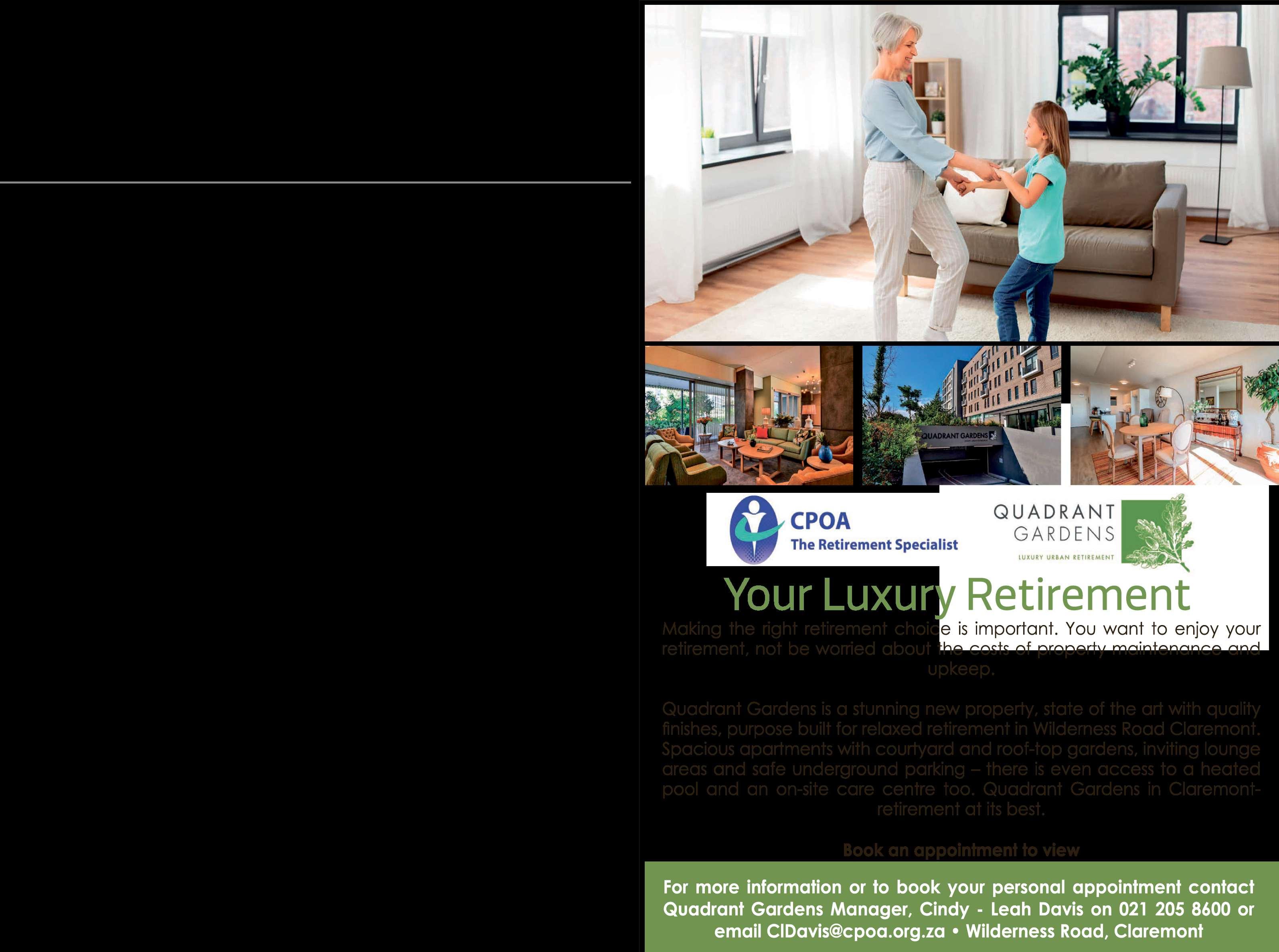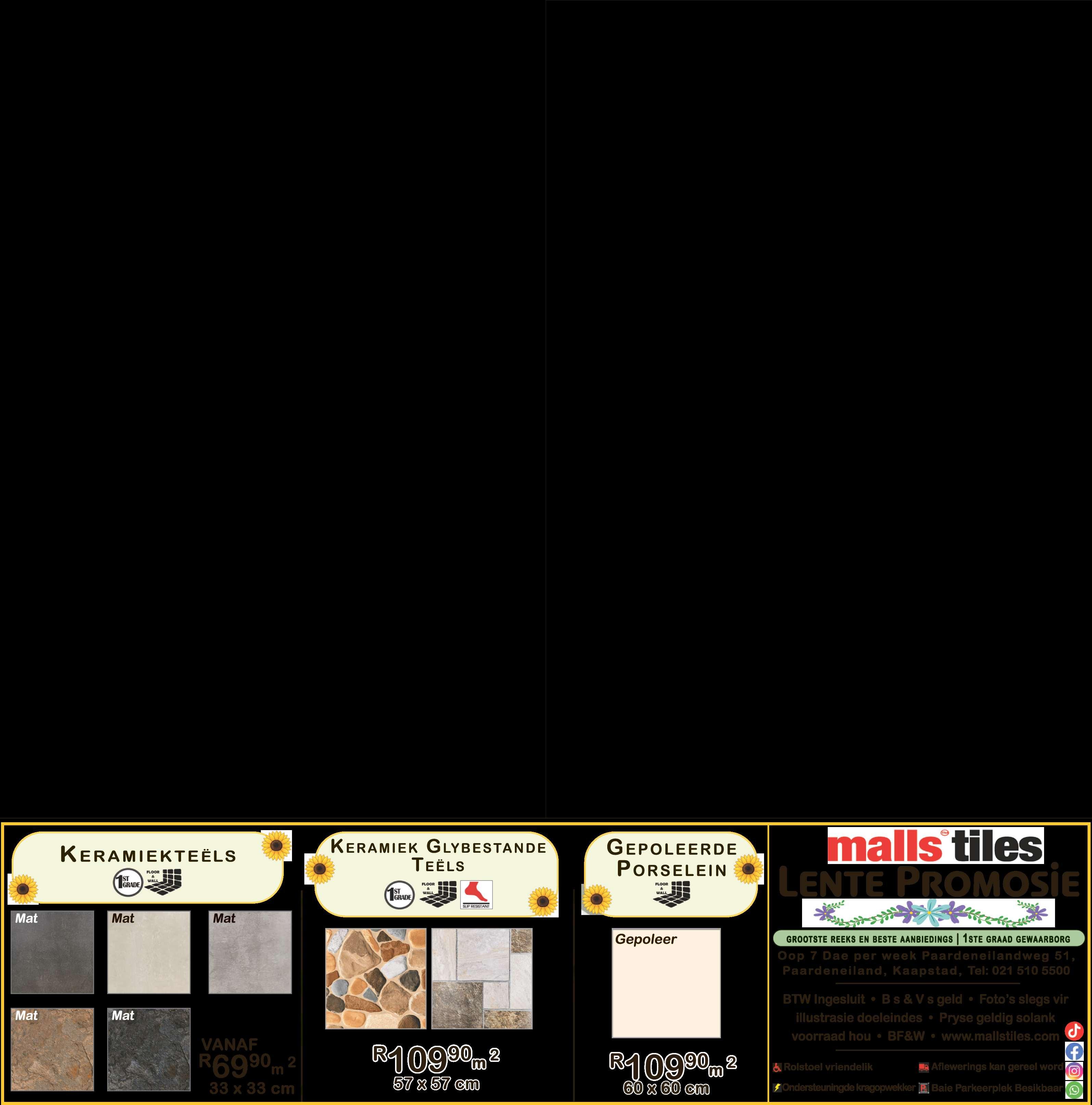 . Bellville Senior Sentrum/Chrismar Villas hou van 09:00 tot 11:00 hul jaarlikse tradisionele basaar by Jessiestraat 25, Chrismar, Bellville Al die tradisionele lekkernye soos pannekoek, basaarpoeding, jaffels, vetkoek, hamburgers, boereworsrolle pampoenkoekies en roosterkoeke sal daar wees, asook die heerlikste tuisgebakte lekkernye Winskopies en verrassings wag by die plaas-, witolifant- en handwerktafel en vir die boekwurms is daar 'n boeketafel. Geniet 'n versnapering in die kafeteria. Chrismar Villas se eie orkes sal die hele oggend musiek maak. Koskaartjies kan op die dag gekoop word of vooraf in kantoorure van Maandae tot Vrydae vanaf 08:00 tot 12:00 by 021 910 1250 Kaartfasiliteite sal beskikbaar wees.