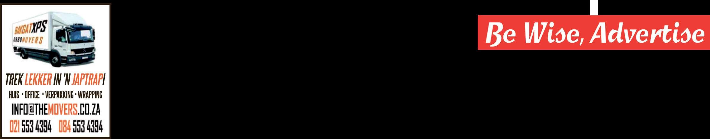. Die NG kerk Bellville-Riebeeck te Noordstraat 2in Chrismar hou basaar van08:00 tot13:00.Die basaar biedietsvir almal. Boekliefhebbers kanrondsnuffelbydie boeketafel,terwyl skattejagtersnie die witolifanttafelmoetmisloop nie. Kinders kanprethê by diekindertombola-enspeletjiestafel. Virrustige oomblikkeisdaar 'n teetuinmet koffie, teeenkoek beskikbaar. Kaartjiesvir etes —spitbraaienhoenderpastei —kan vooraf bespreekwordbydie kerkkantoor (021 919 1501) of pere-pos na kktoor@ngkbriebeeck co.za. Aanlyn besprekingskan ookgedoenwordby: https://forms.gle/9eK9hEginf6BFwxT7