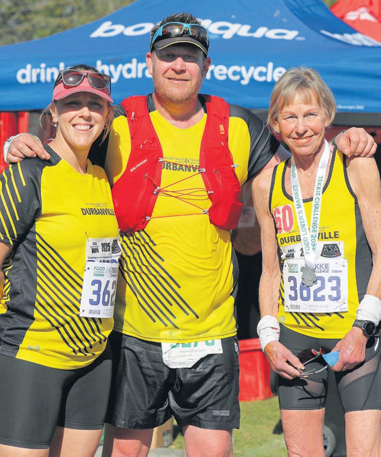 Van links: Guinivere Grunow,Ian Martineich en Lorraine Rogers van Durbanville-atletiekklub het die 16km gedoen