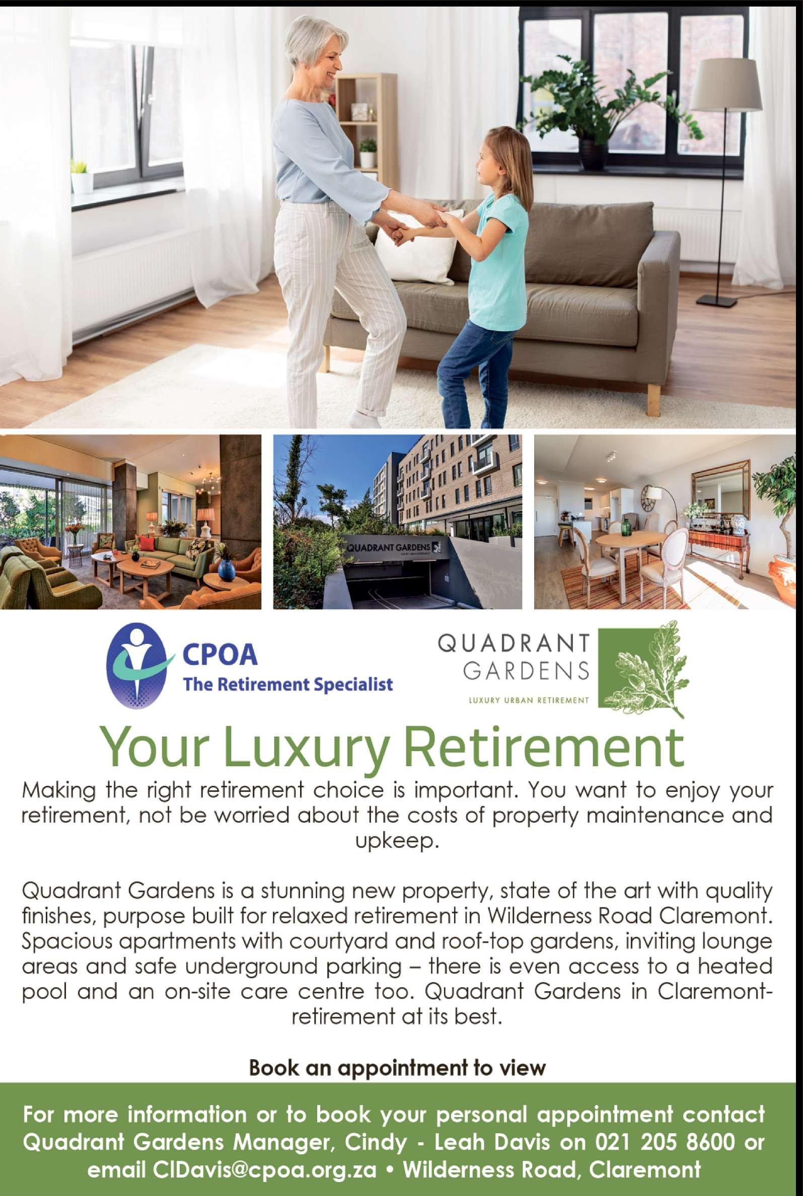 . The Dr Randall Ortel Foundation will host a Men’s Health Club Open Day from 11:00 to 13:00 at Watergate Medical Centre, 60 Watergate Boulevard, Mitchell’s Plain. It is open to men aged between 30 and 55. A R100 donation is required. Call 082 456 2186 or 060 592 9558 for more information.