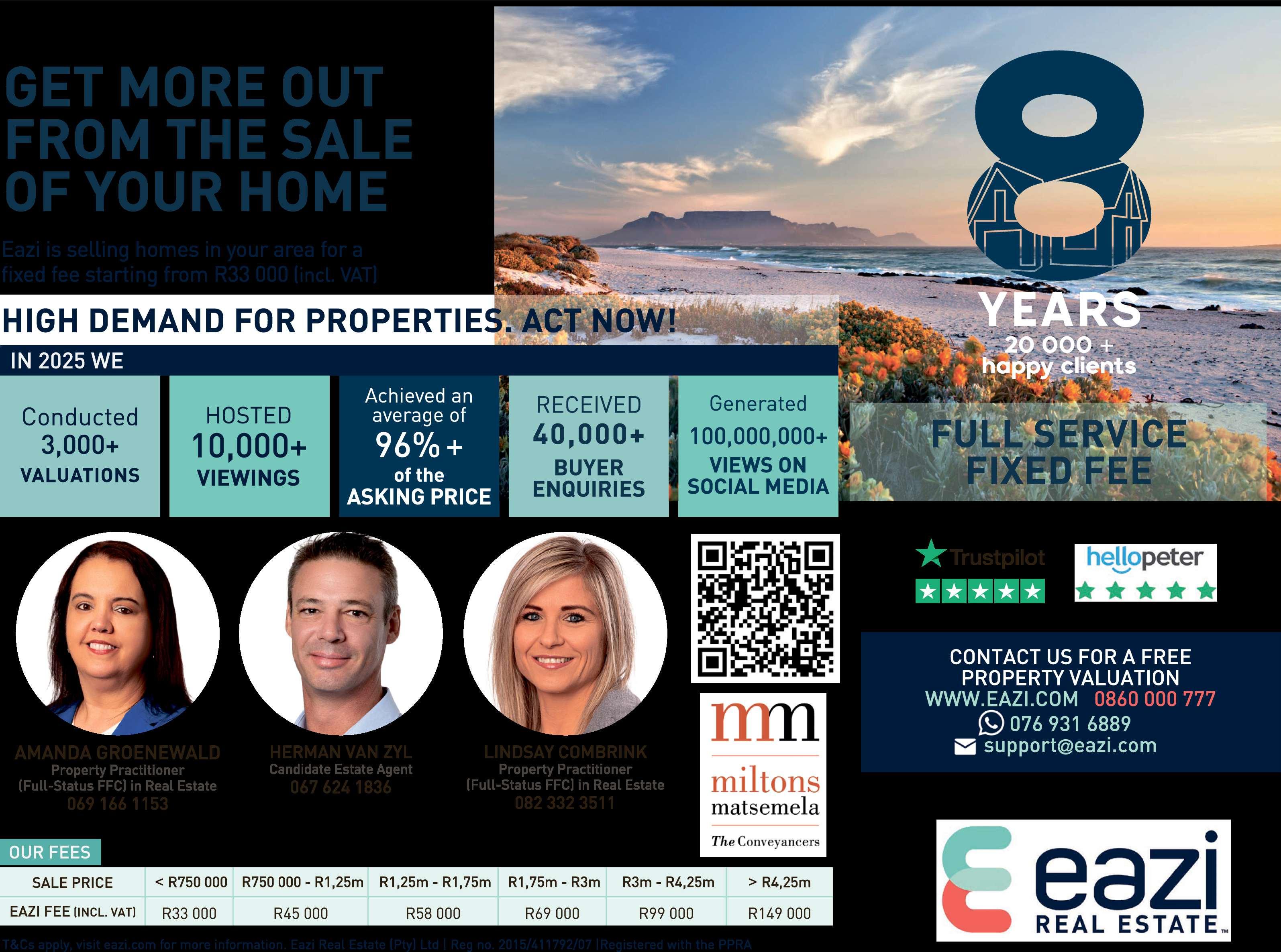 Alle plaveisel vanaf R250 perm2. Alles ing Tel. 072 132 5573 FORM JJJ LOST OR DESTROYED DEED Notice is herebygiven in terms of Regulation 68(1) of the Deeds Registries Act, 1937, of the intention to applyfor the issue of acertified copyofDeed of Transfer Number T14314/2016 passed by 1. NICOLE SILVINA BRESLER(previouslyBELL), Identity Number 8406220224 08 4, Married outofcommunityof property and2.WERNER FREDERICK BRESLER, Identity Number 8005215056 08 7, Married out of communityof property in favour of TERTIA NAOMIBREDENKAMP, Identity Number 5604090110 08 5in respect of ERF 31032 Kraaifontein, situate in the City of Cape Town, Paarl Division, Province of the Western Cape. Whichhas been lostor destroyed.All persons having objection to the issueofsuch copyare herebyrequired to lodge the same in writingwith the Registrar of Deeds:Western Cape at Foreshore Place, 2 Riebeek Street, Cape Town Central Business District within two weeks after the date of publication of thisnotice. Van Zyl Kruger Inc ADDRESS: PO BOX4019, TYGER VALLEY,7536 Email address: karin @vzk.co.za Contact Number:(021)180 4550